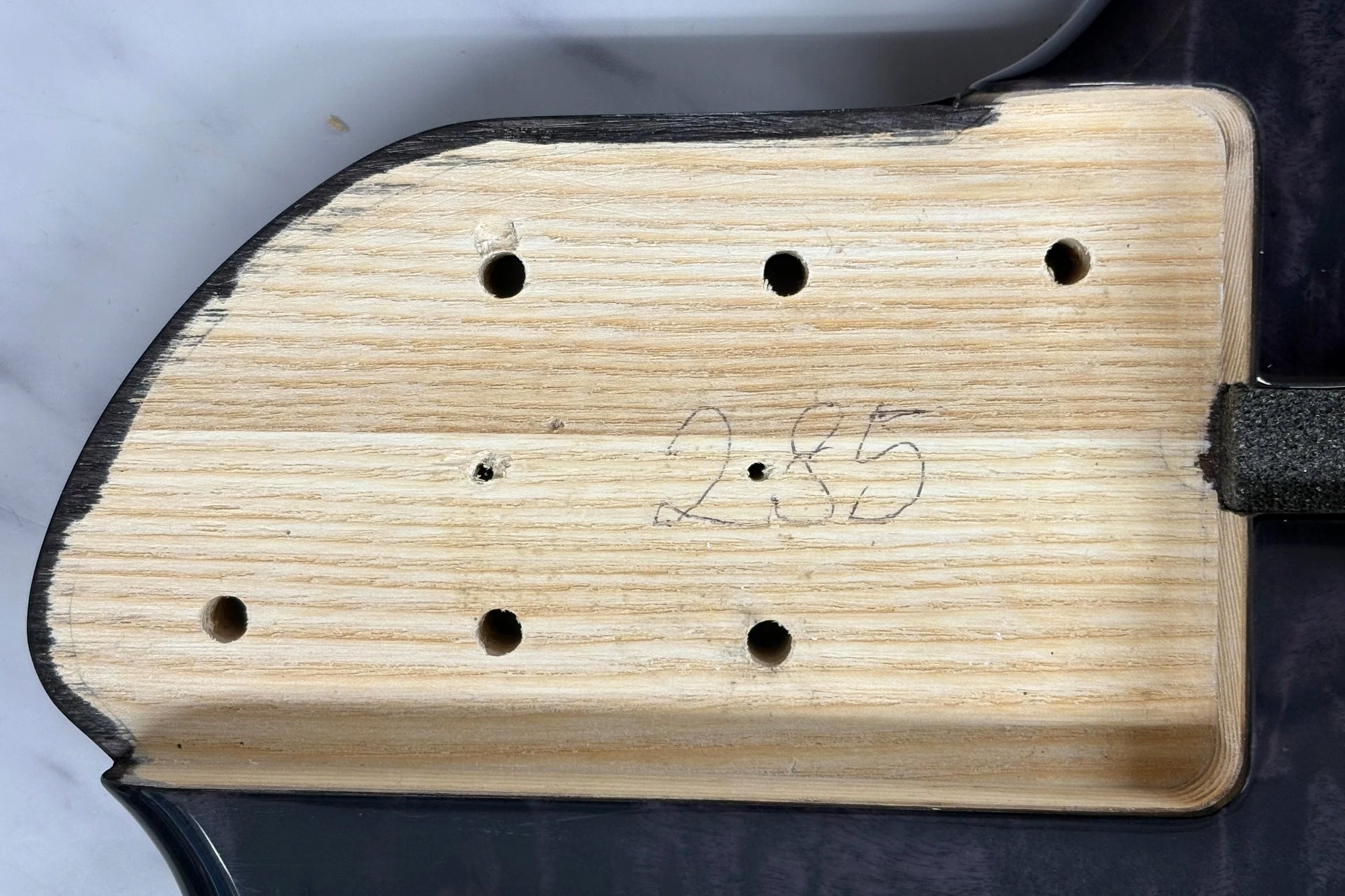 The body is made of ash and the top is made of Eye Poplar.