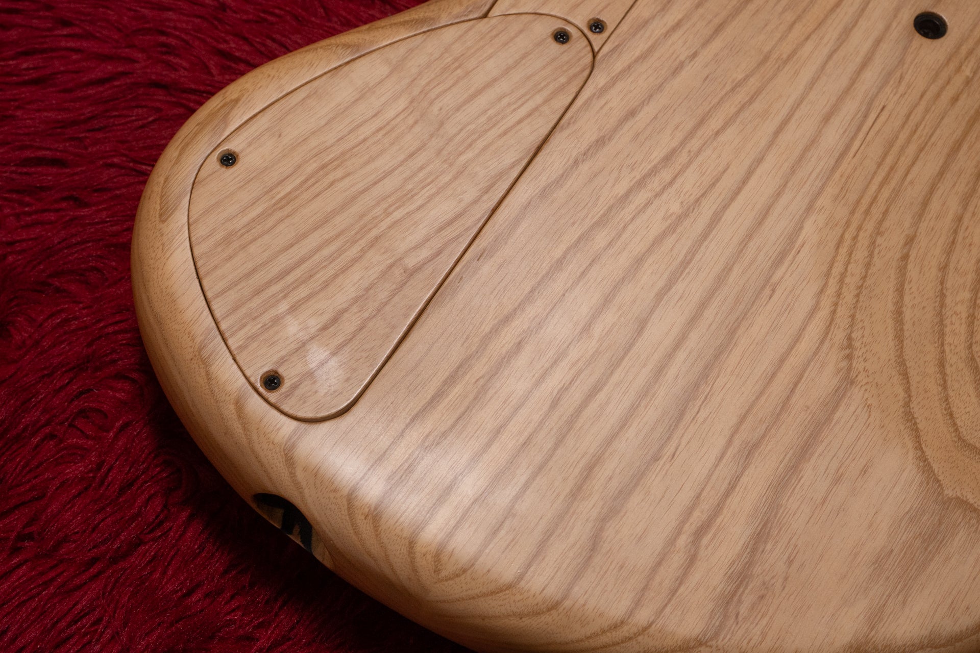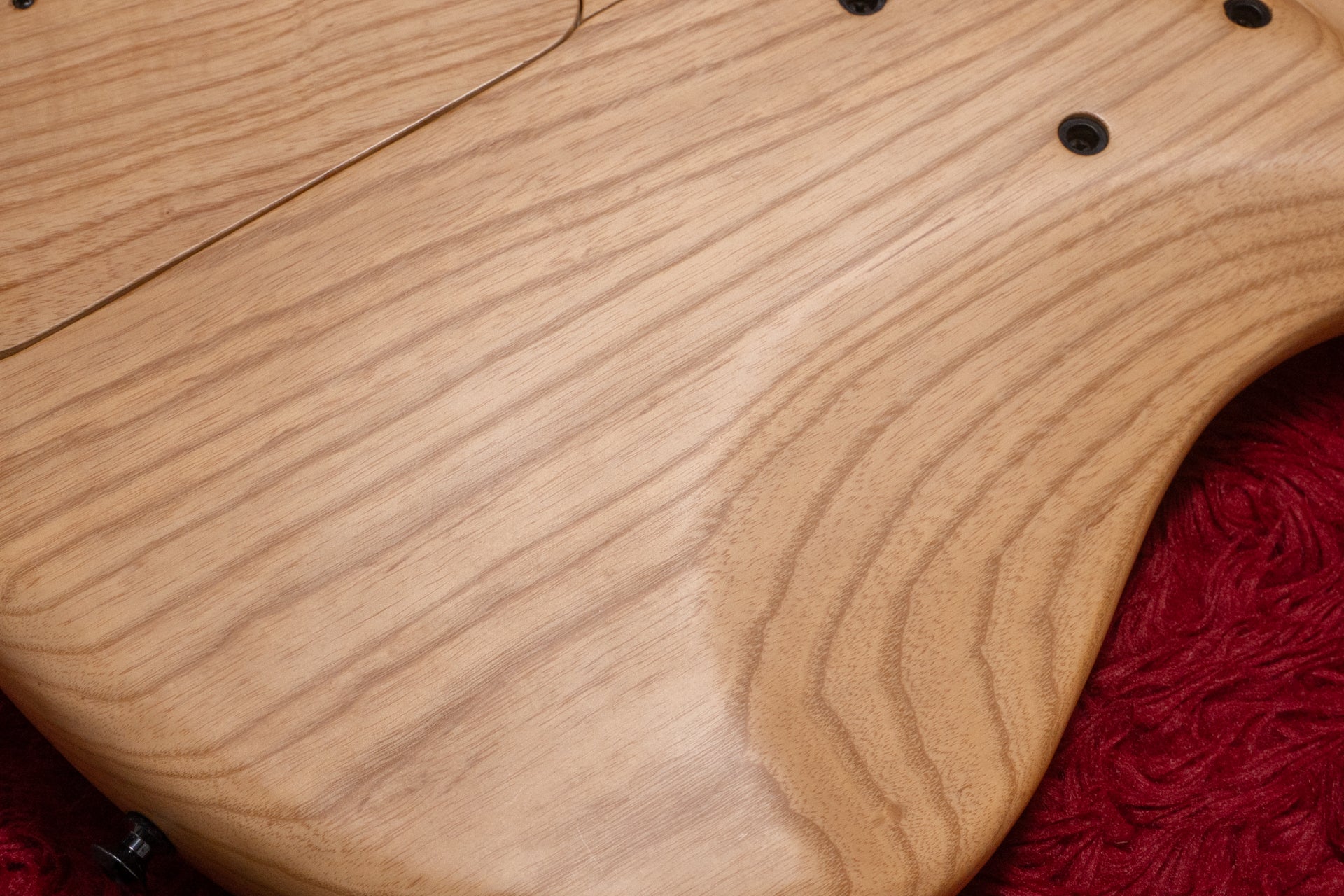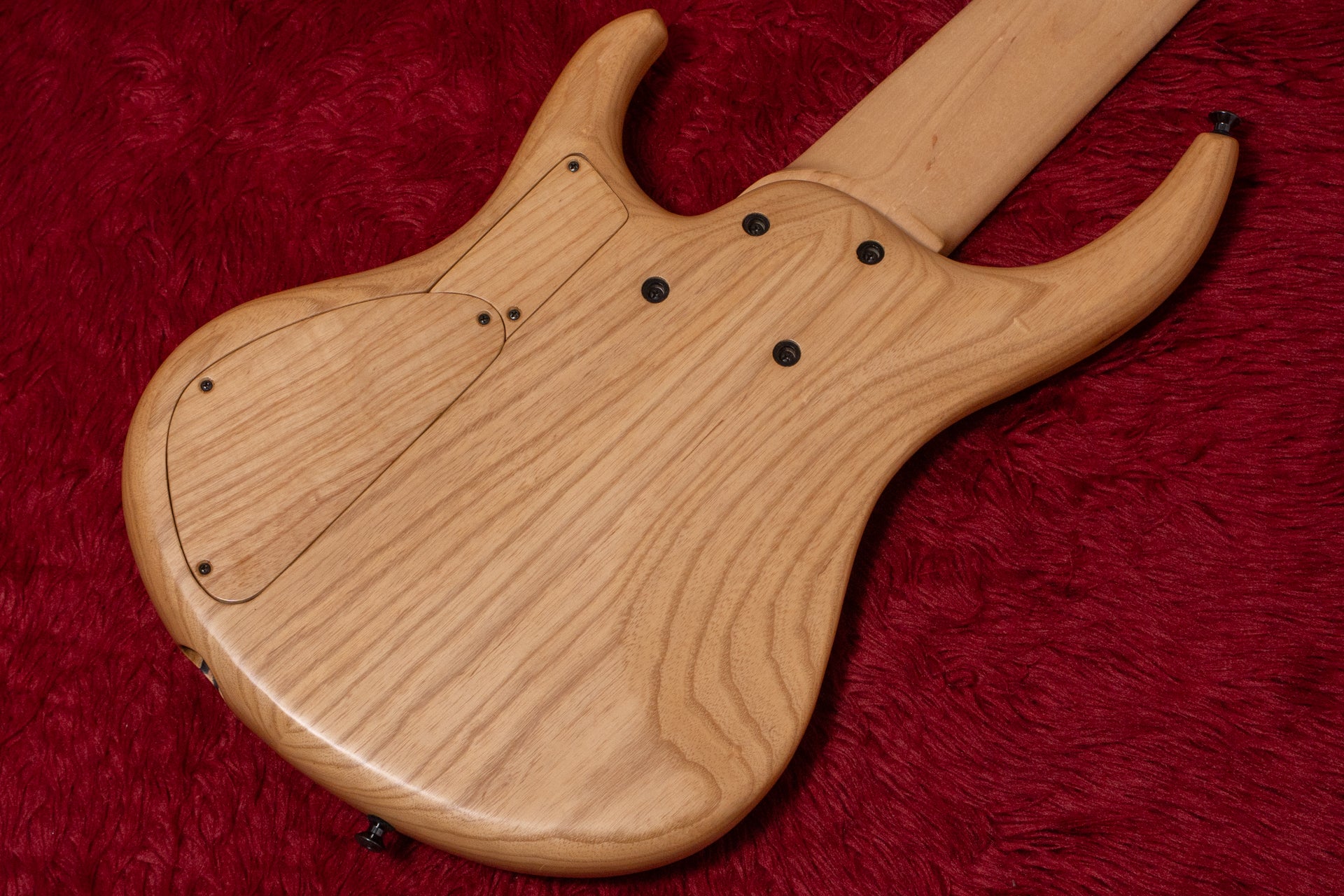 The body back is ash, the neck is maple, and the fingerboard is ebony.