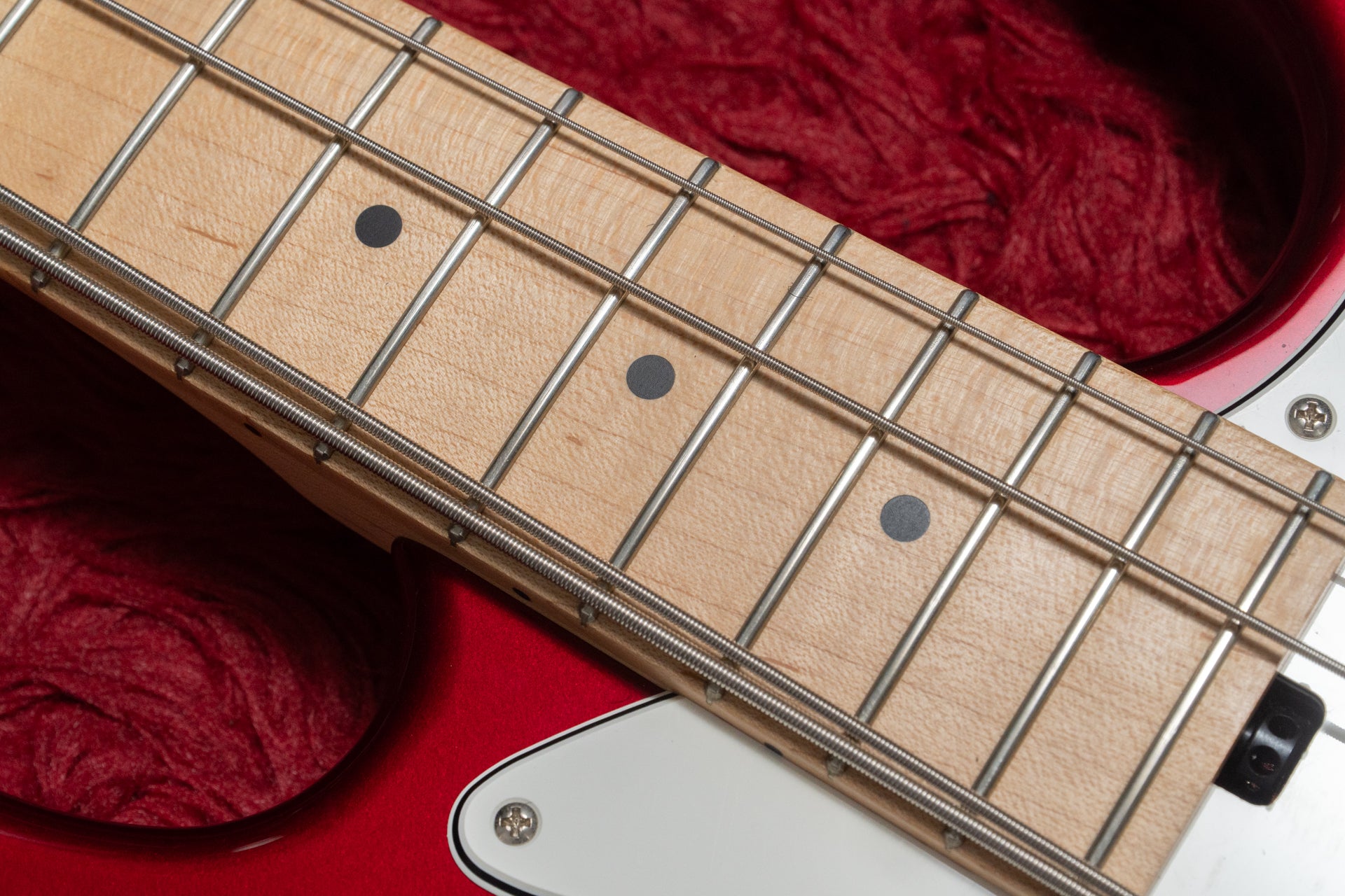 It is equipped with split-coil pickups with hum-canceling functionality, similar to DiMarzio pickups.