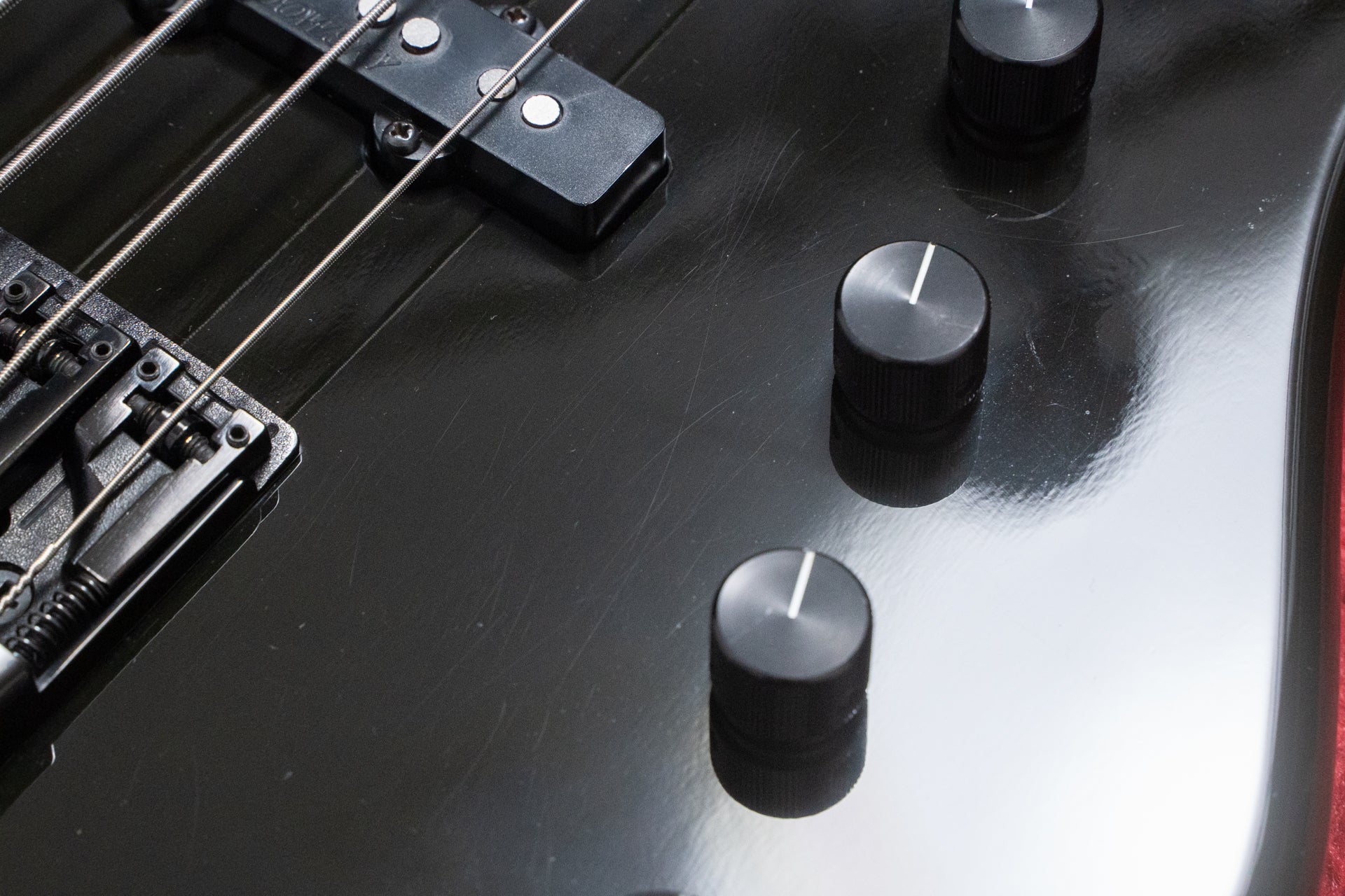 Controls: Master volume, PU balancer, treble, bass, active/passive selector switch
