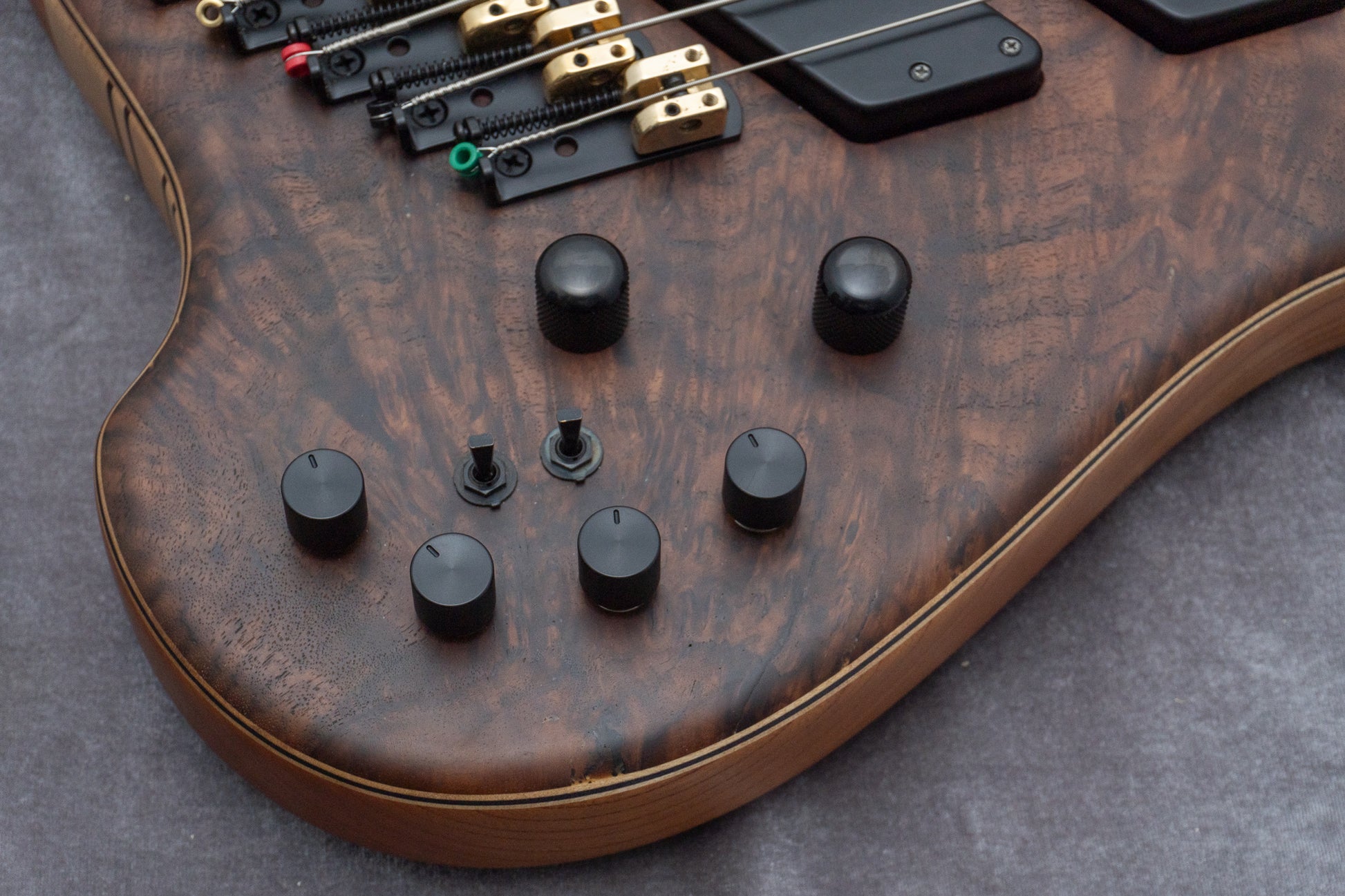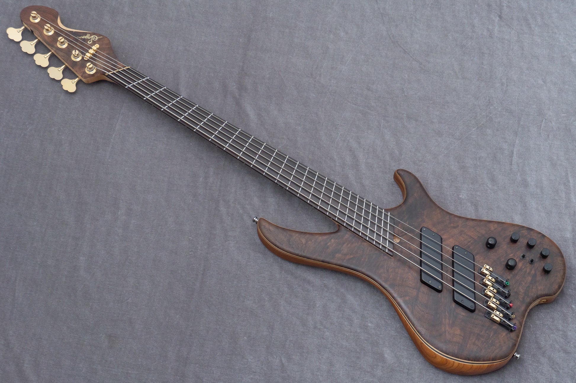 The neck is a 9-piece laminate of Maple and Wenge.