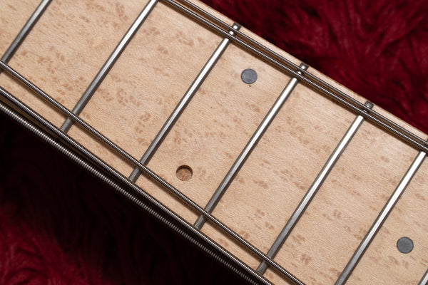 The body is made of ash, with a BirdsEye Maple neck and a BirdsEye Maple fingerboard, making it a luxurious instrument.