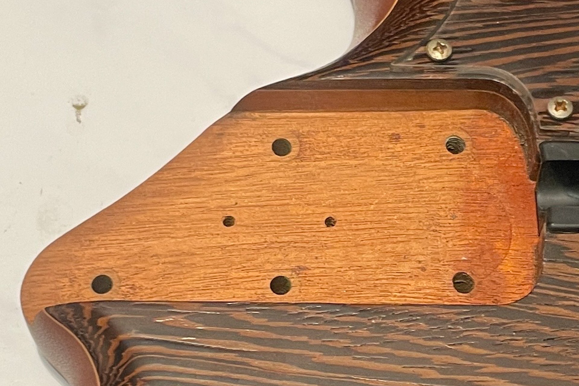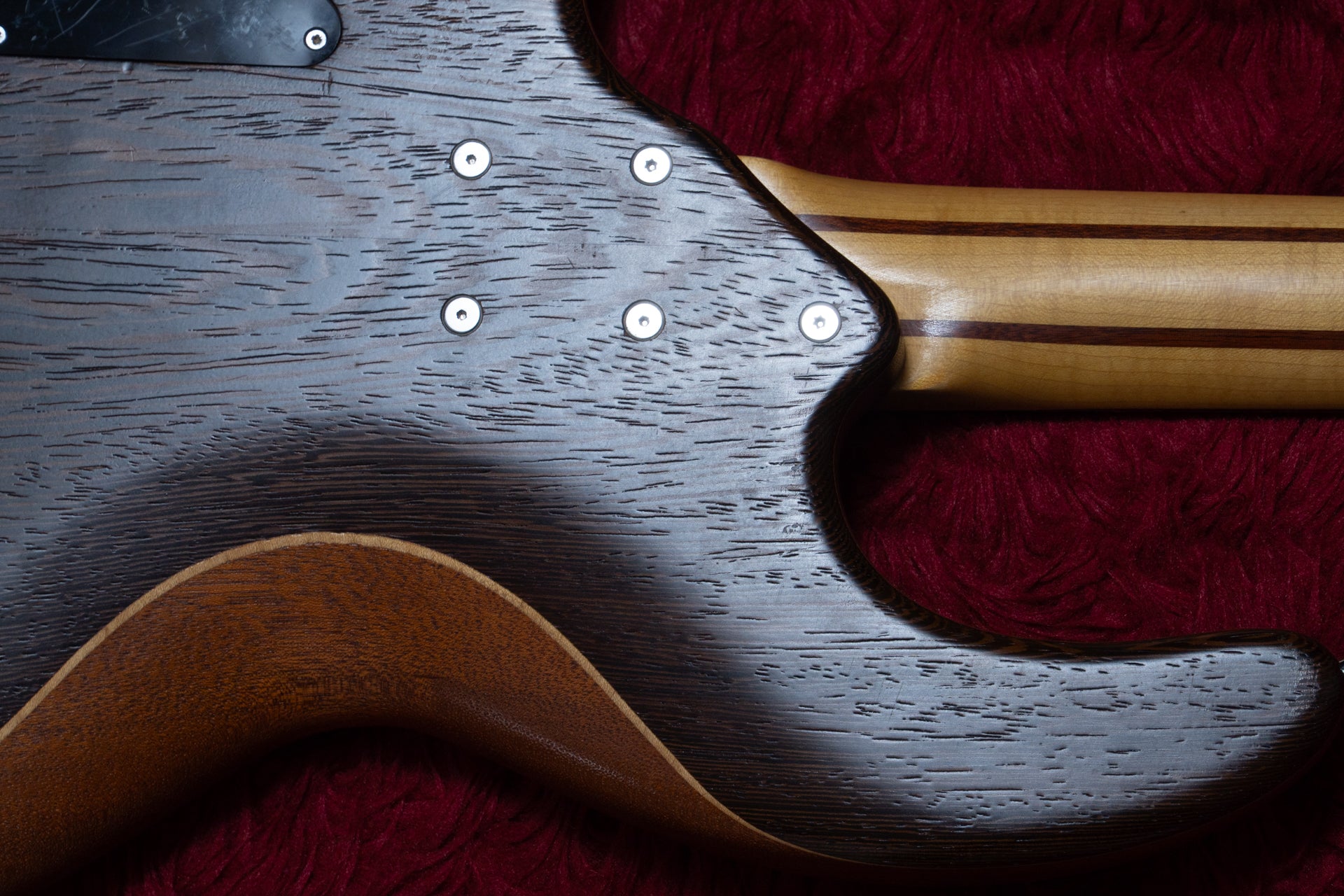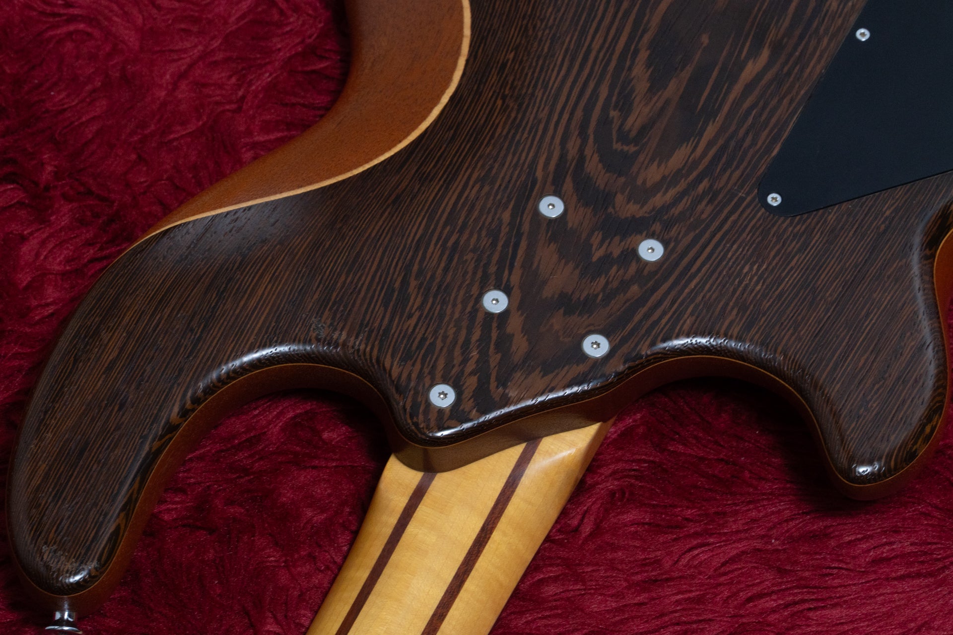 The body is made of Brazilian Mahogany sandwiched between Wenge and Maple.