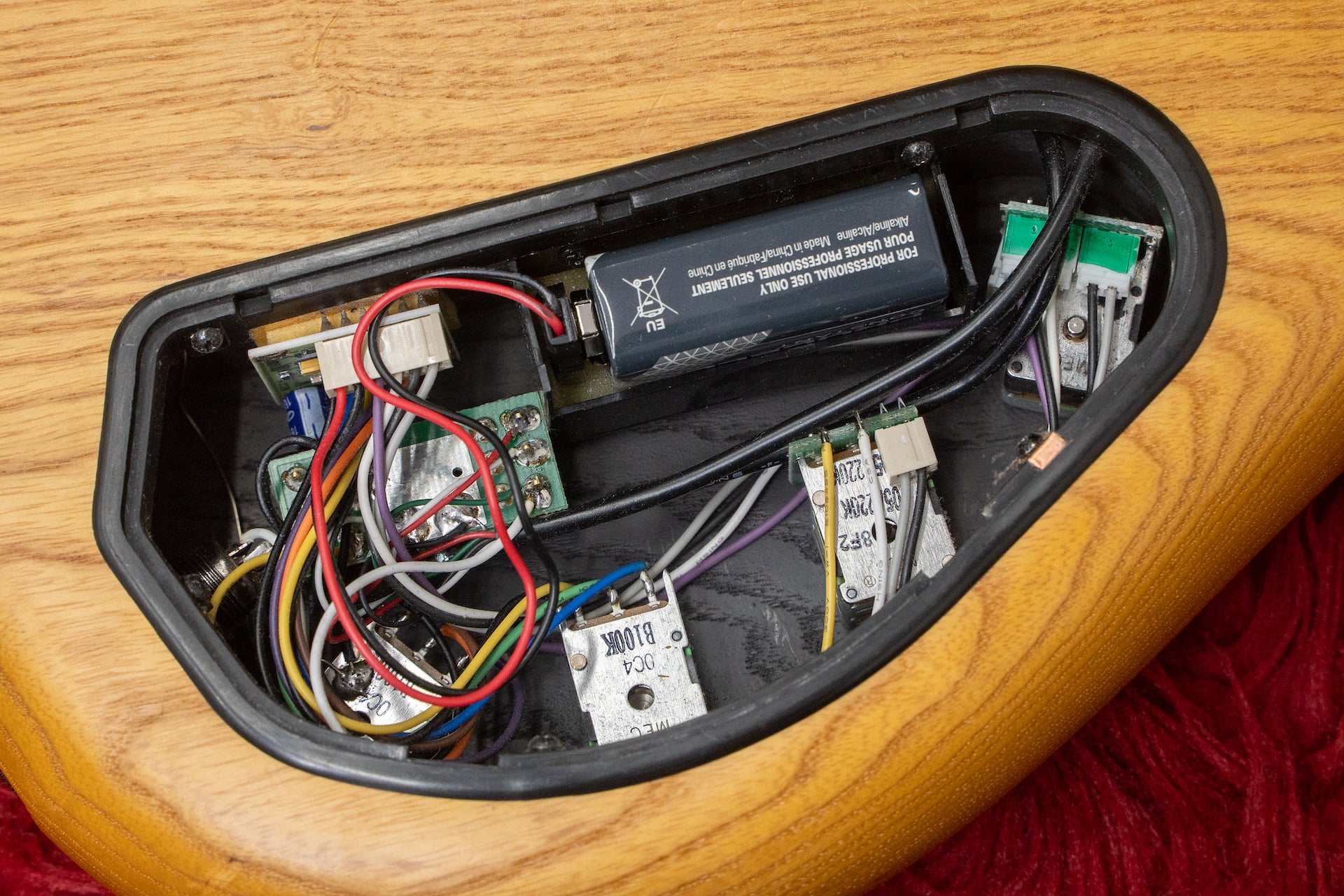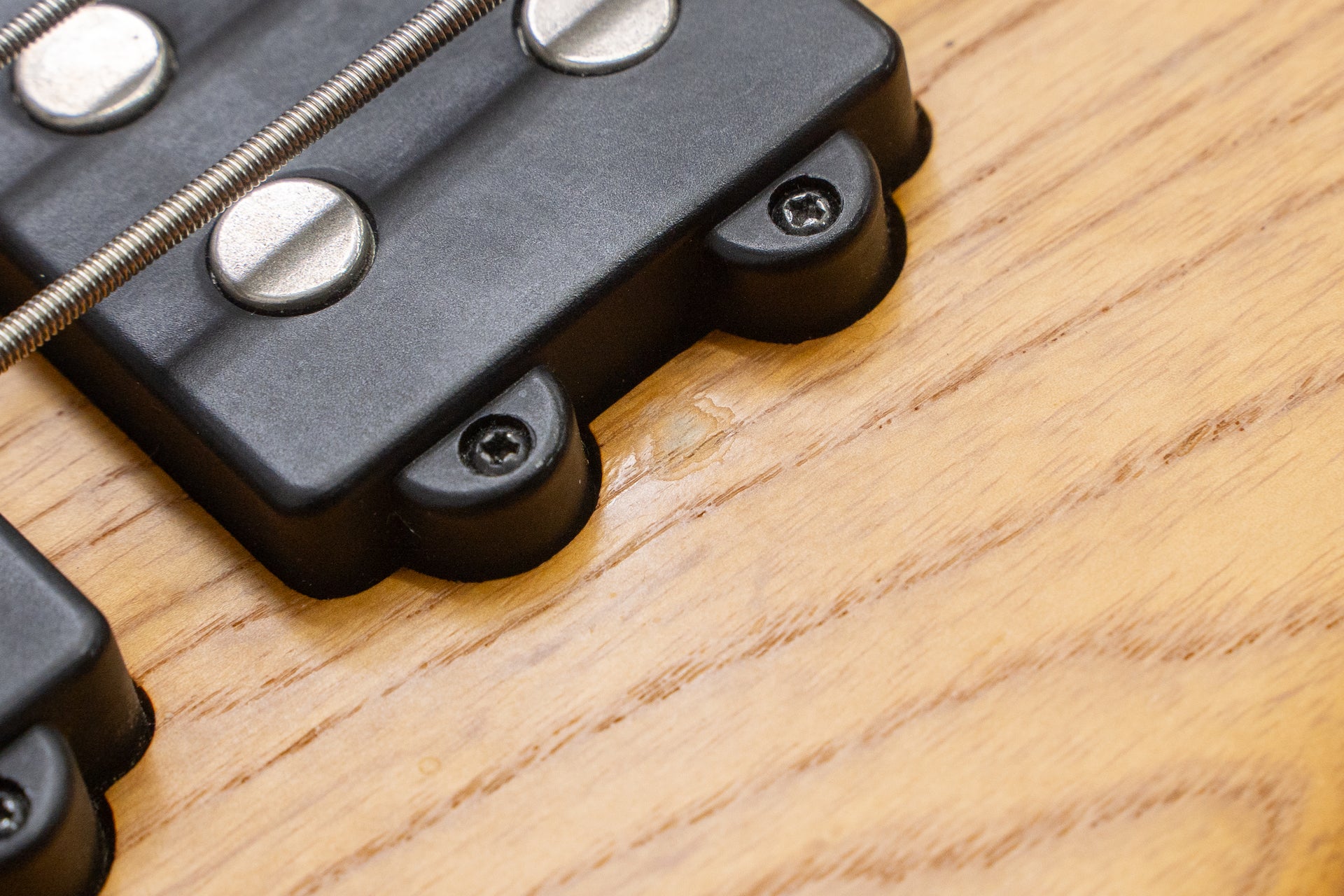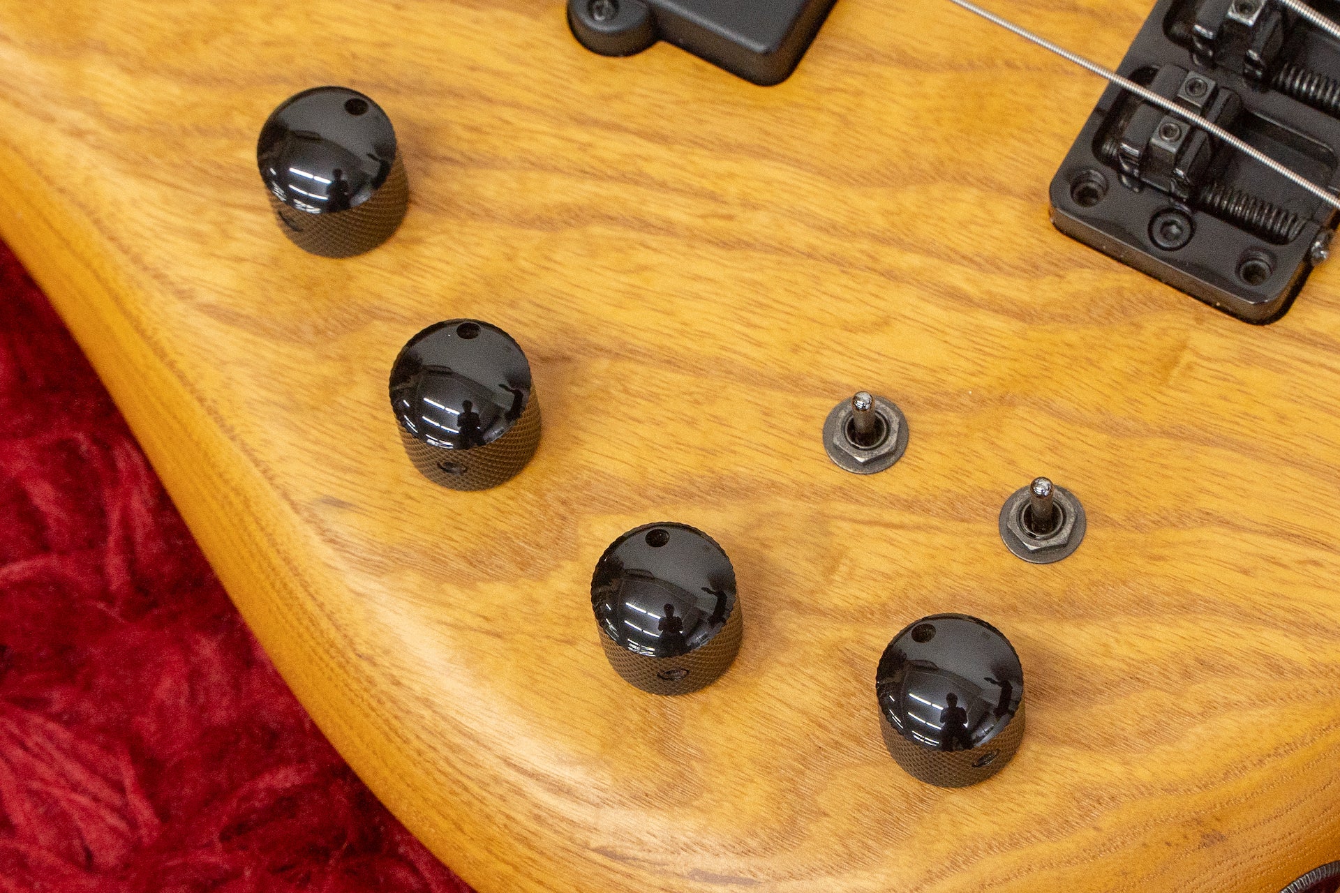Controls: Master volume (push/pull - active/passive), balancer, treble, bass, neck PU wiring switch, bridge PU wiring switch