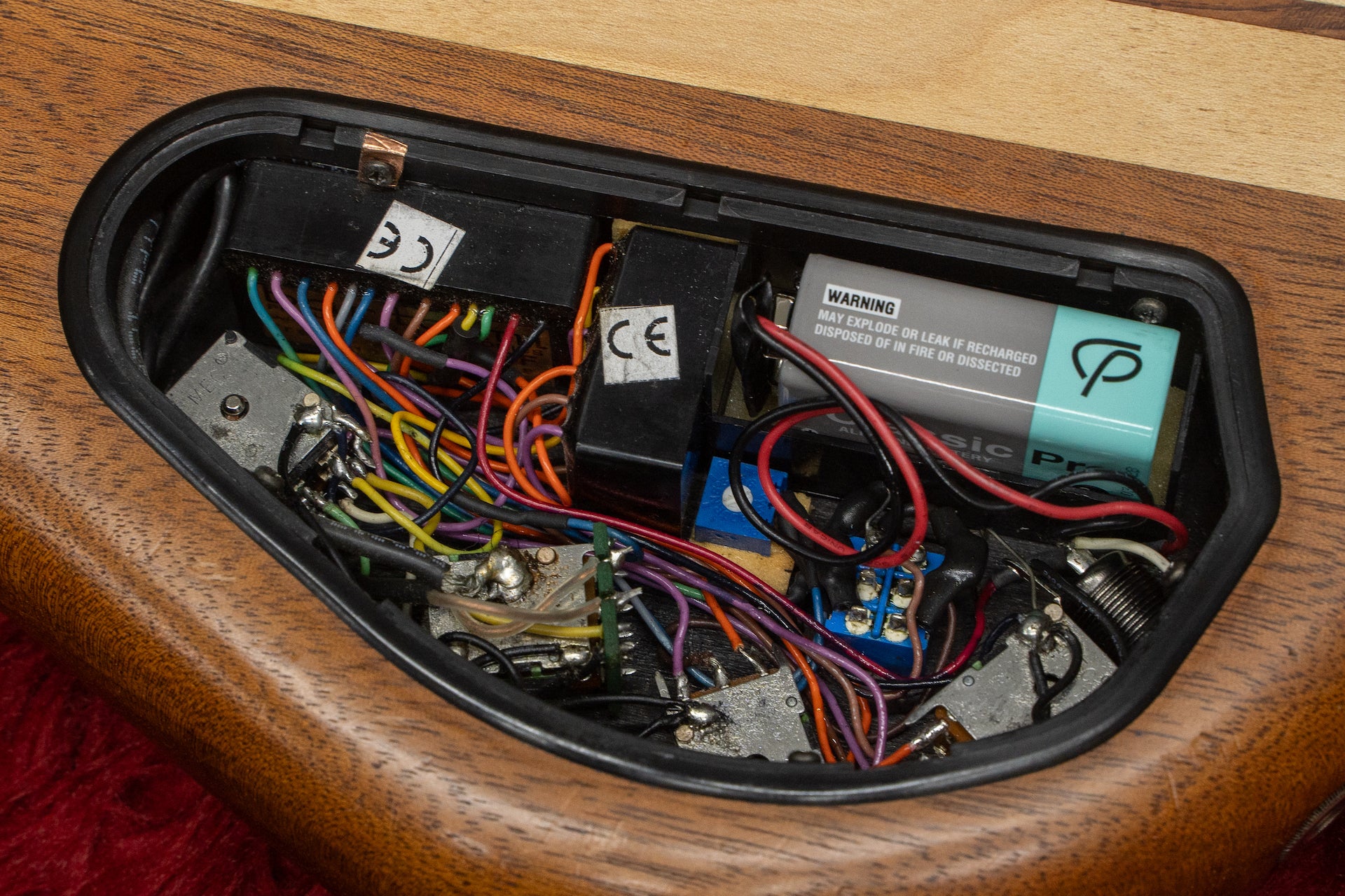 Controls : Master volume (push/pull - active/passive), balancer, middle, treble/bass, 3-way middle frequency switch, preamp gain (in cavity)