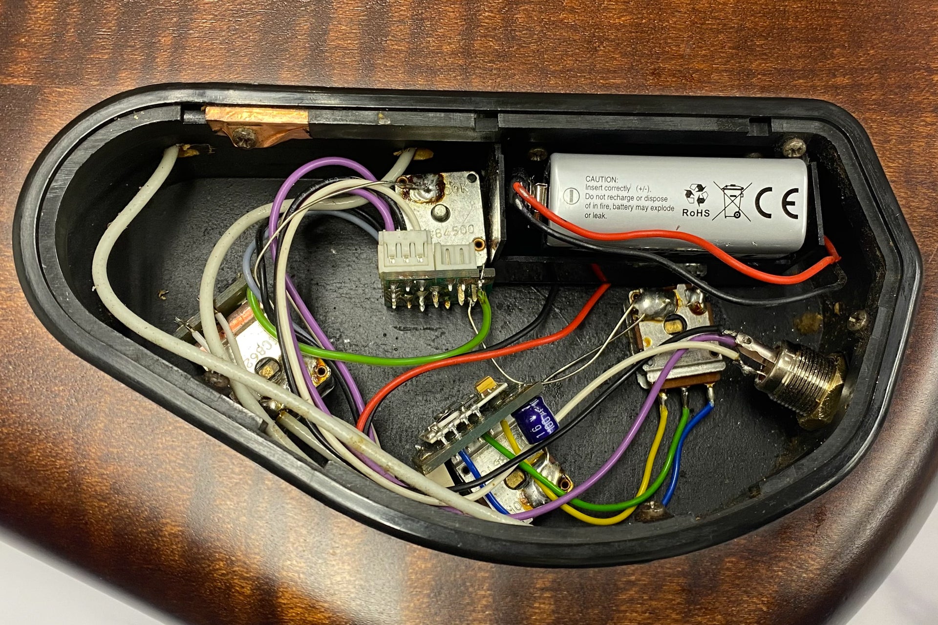 The strap pins have been replaced with Jim Dunlop pins. The jack has also been replaced.