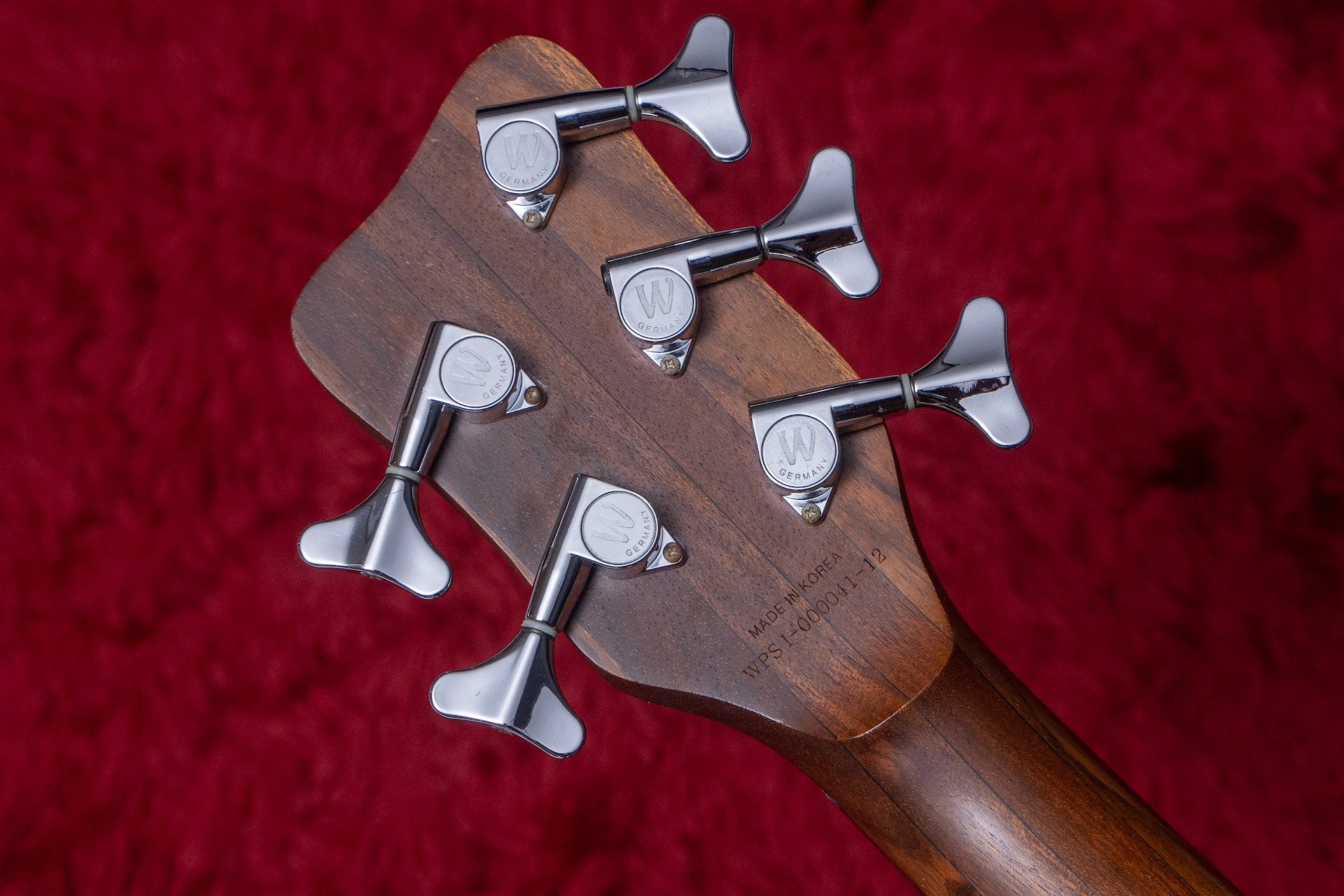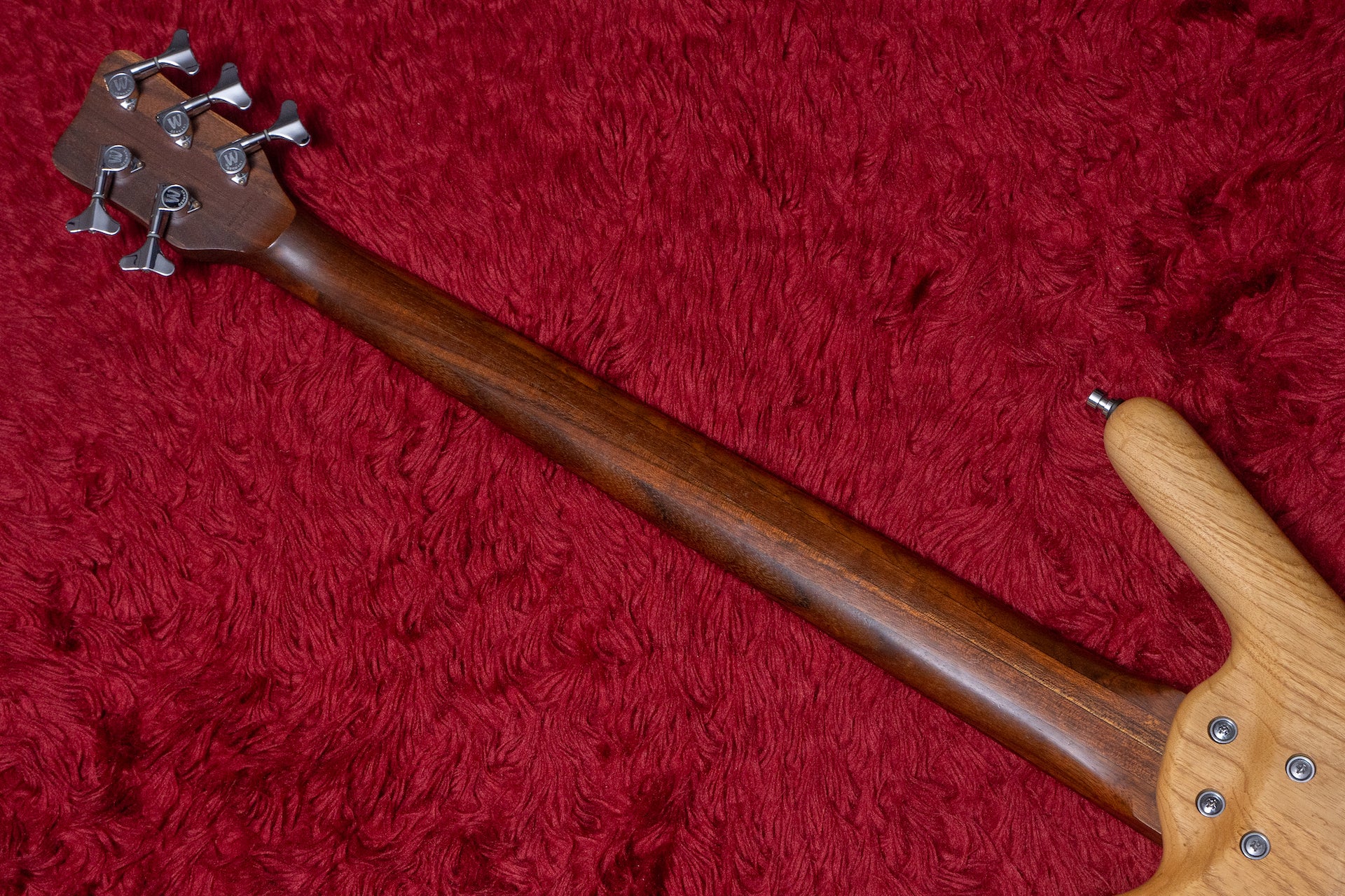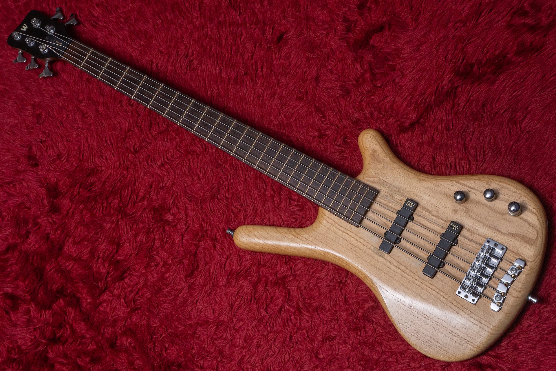 The body is Ash, the fingerboard is Wenge and Warwick specs.