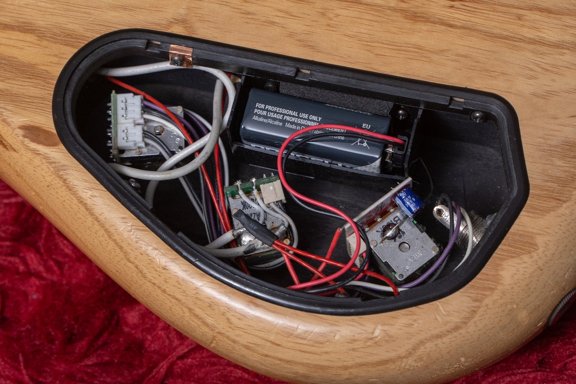 The pickups are made by MEC, and the preamp is original.