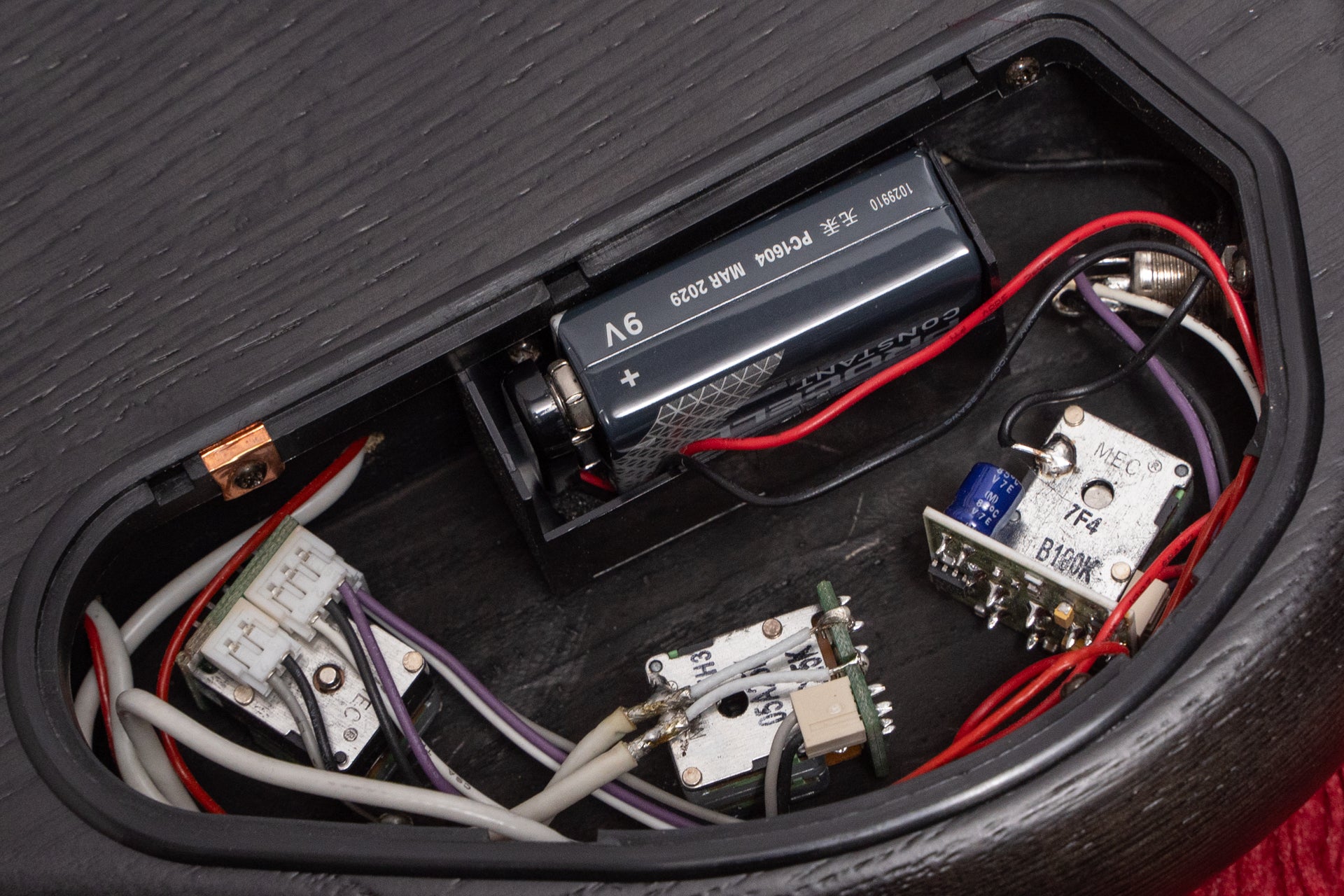 The neck is a multi-layer laminate type mainly made of Ovangkol.