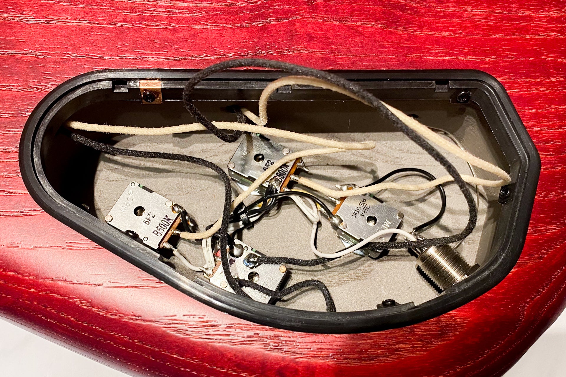 The tuning machines and strap pins have been replaced. There was a problem with the bass tone (passive low-cut), so the pot and capacitor were replaced.