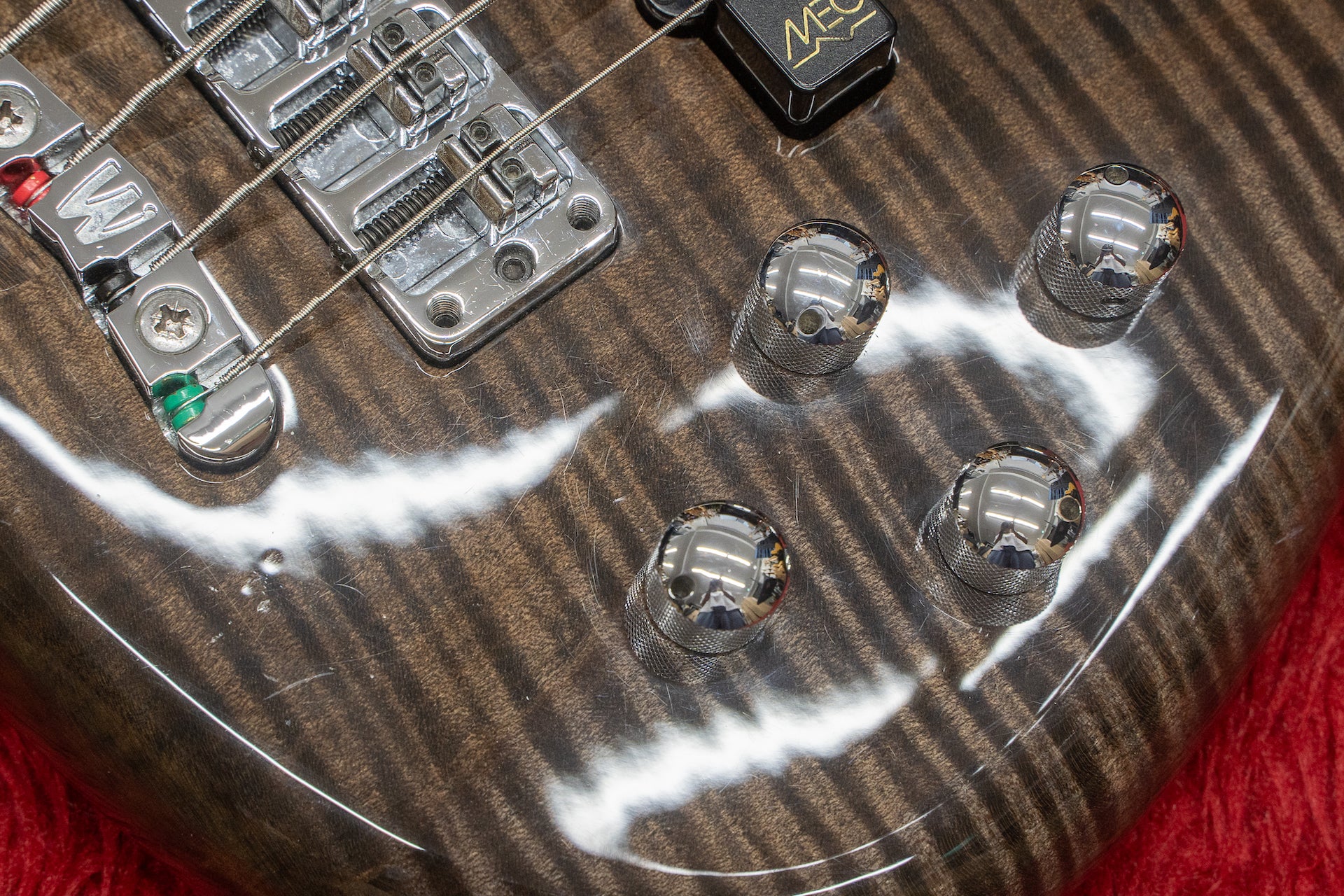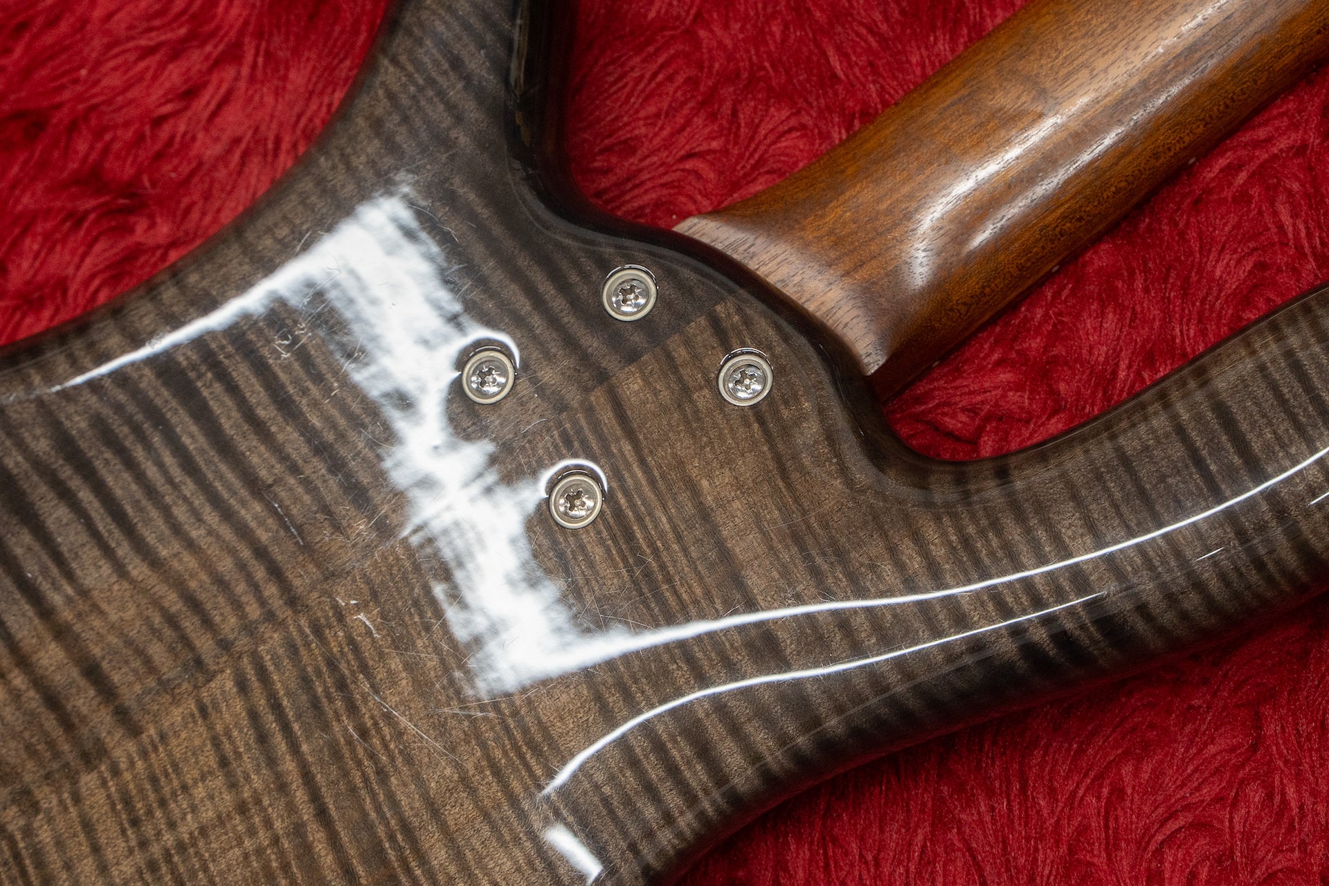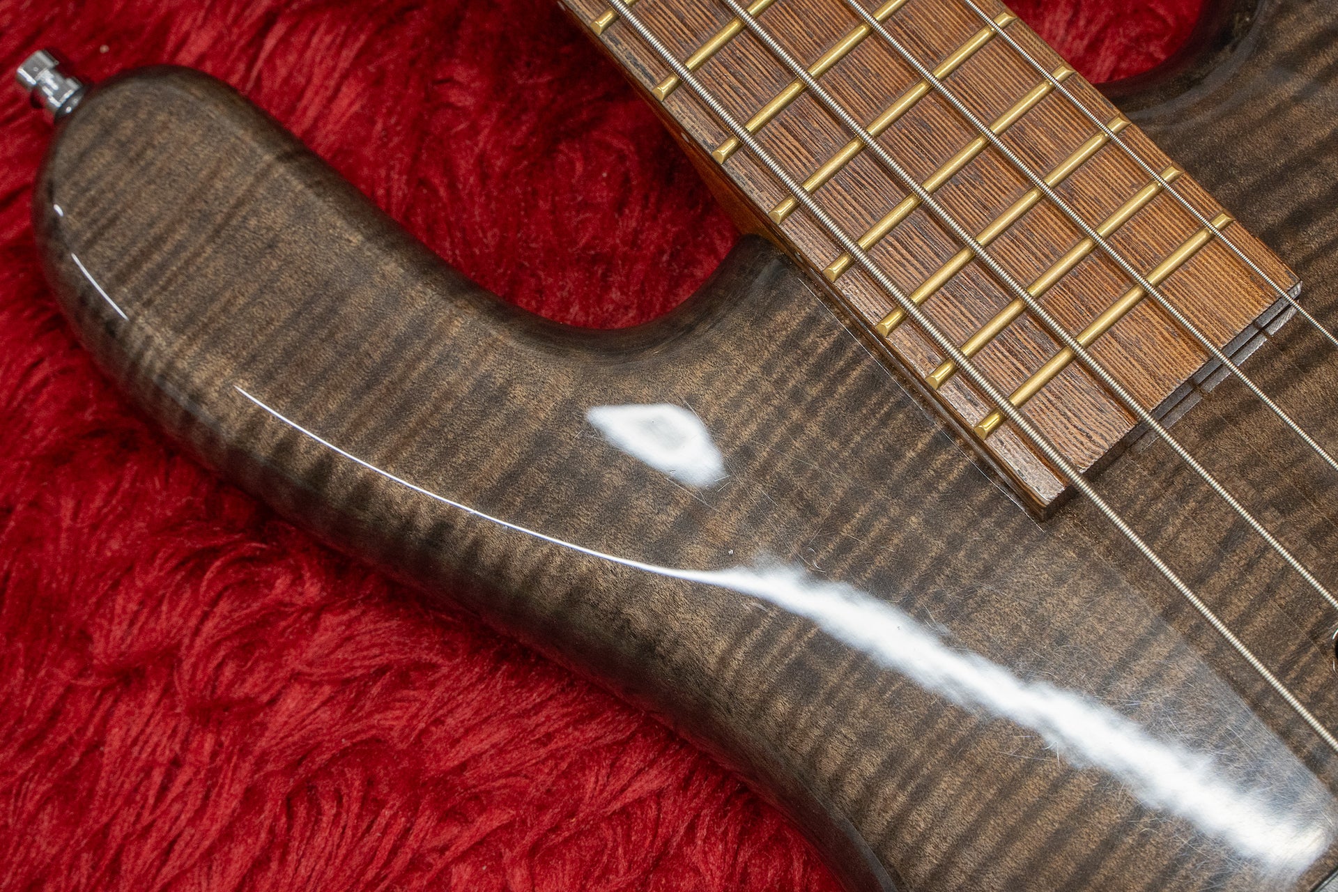 The body is made of beautiful flame maple, the neck is ovangkol, and the fingerboard is wenge.