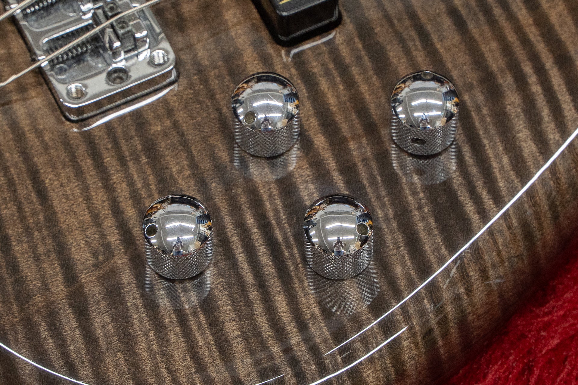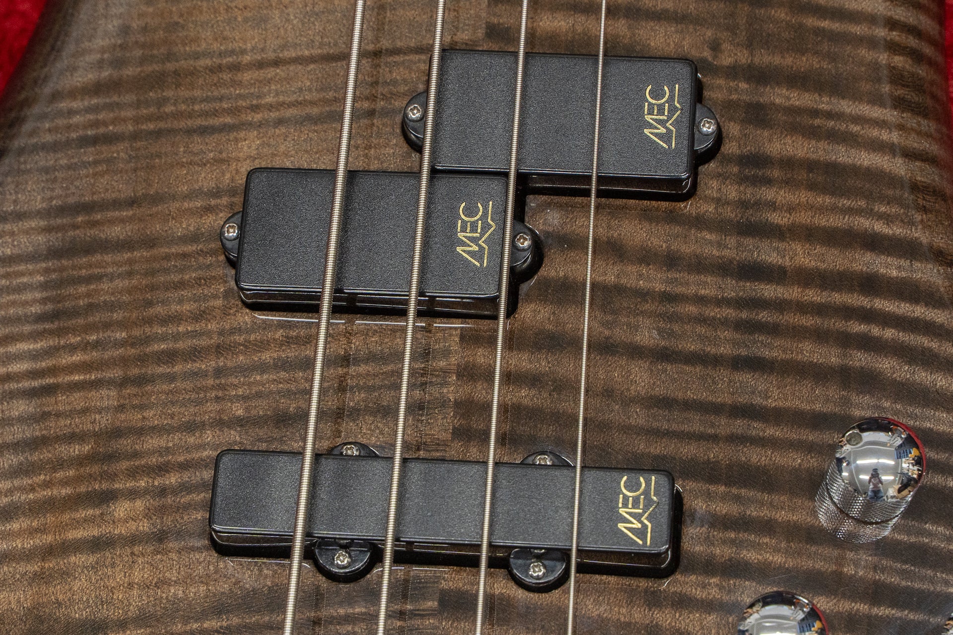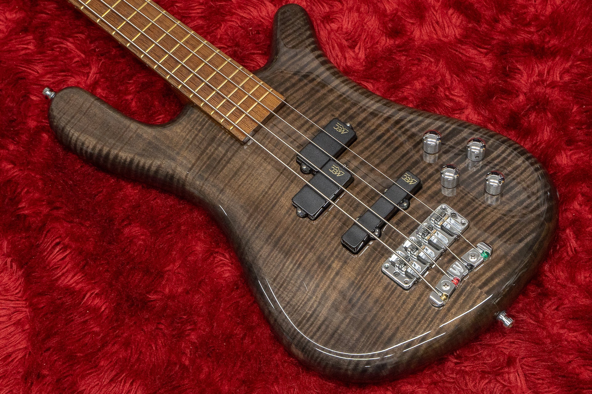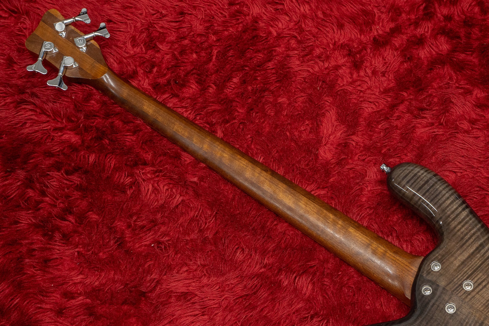 The body is made of beautiful flame maple, the neck is ovangkol, and the fingerboard is wenge.