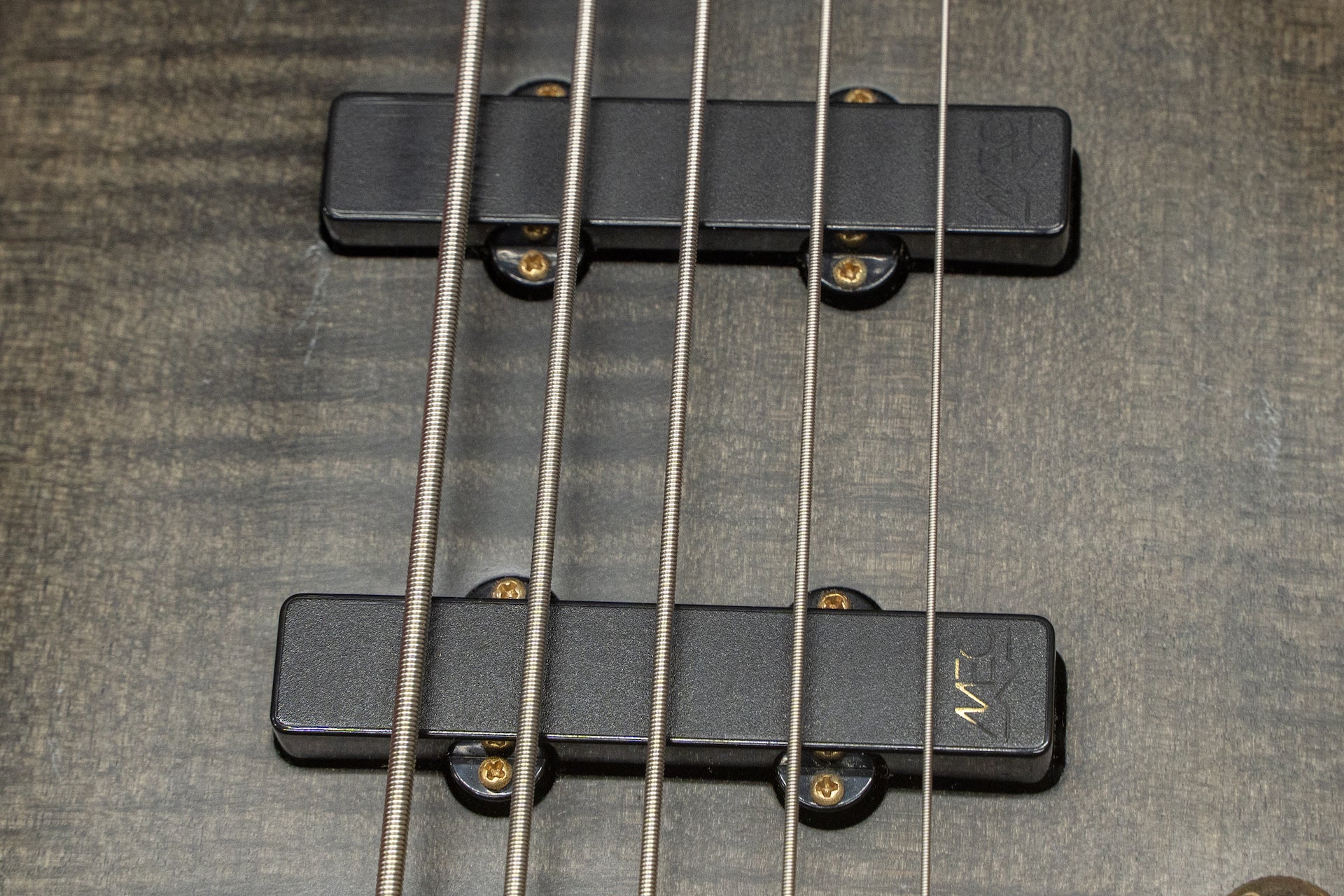 The body is made of beautiful flame maple, the neck is ovangkol, and the fingerboard is wenge.