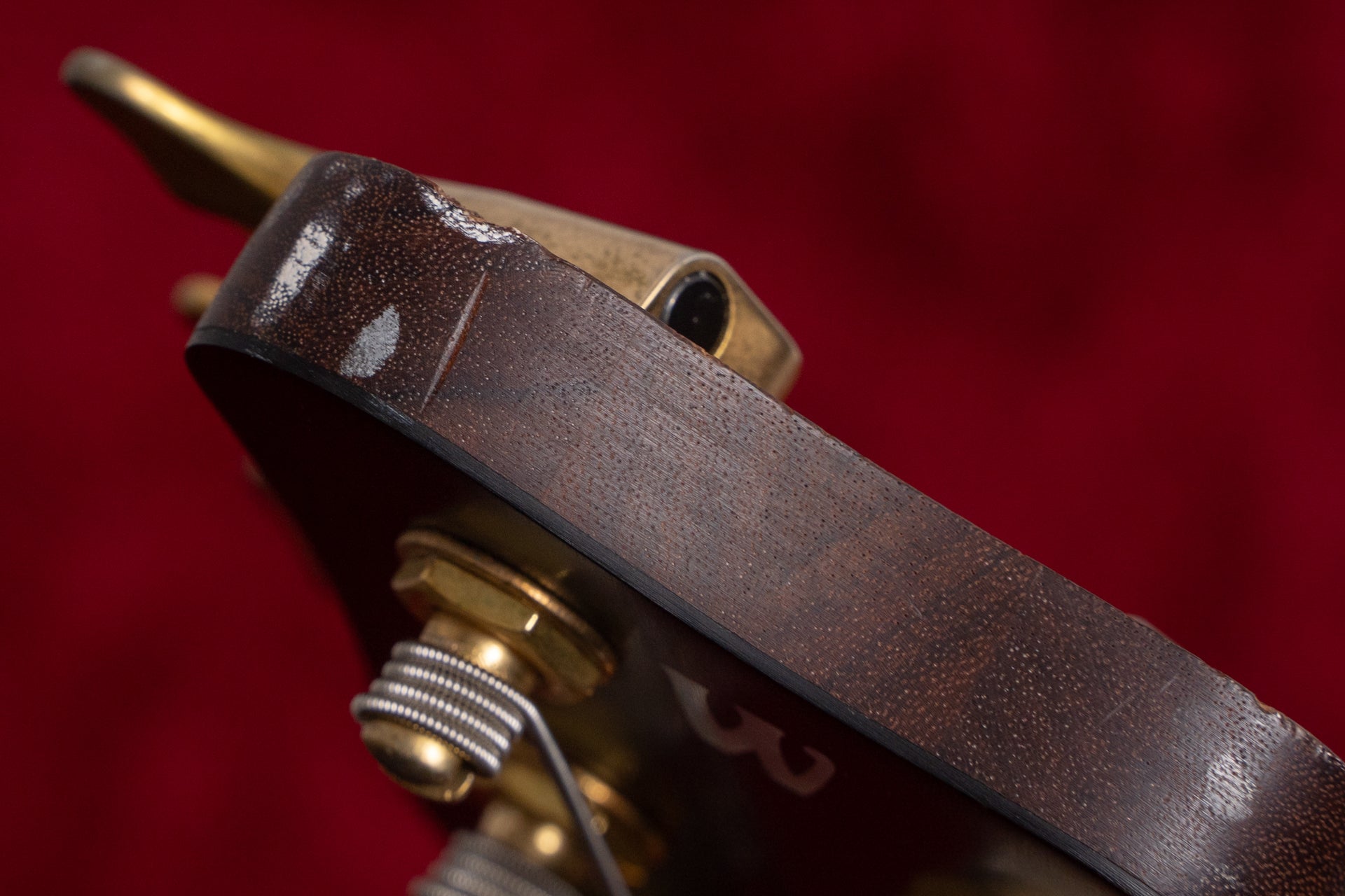 The condition of the body and painted surface is such that there are scratches, dents, buckle marks on the body back, etc. in various places, indicating that it has been played well.