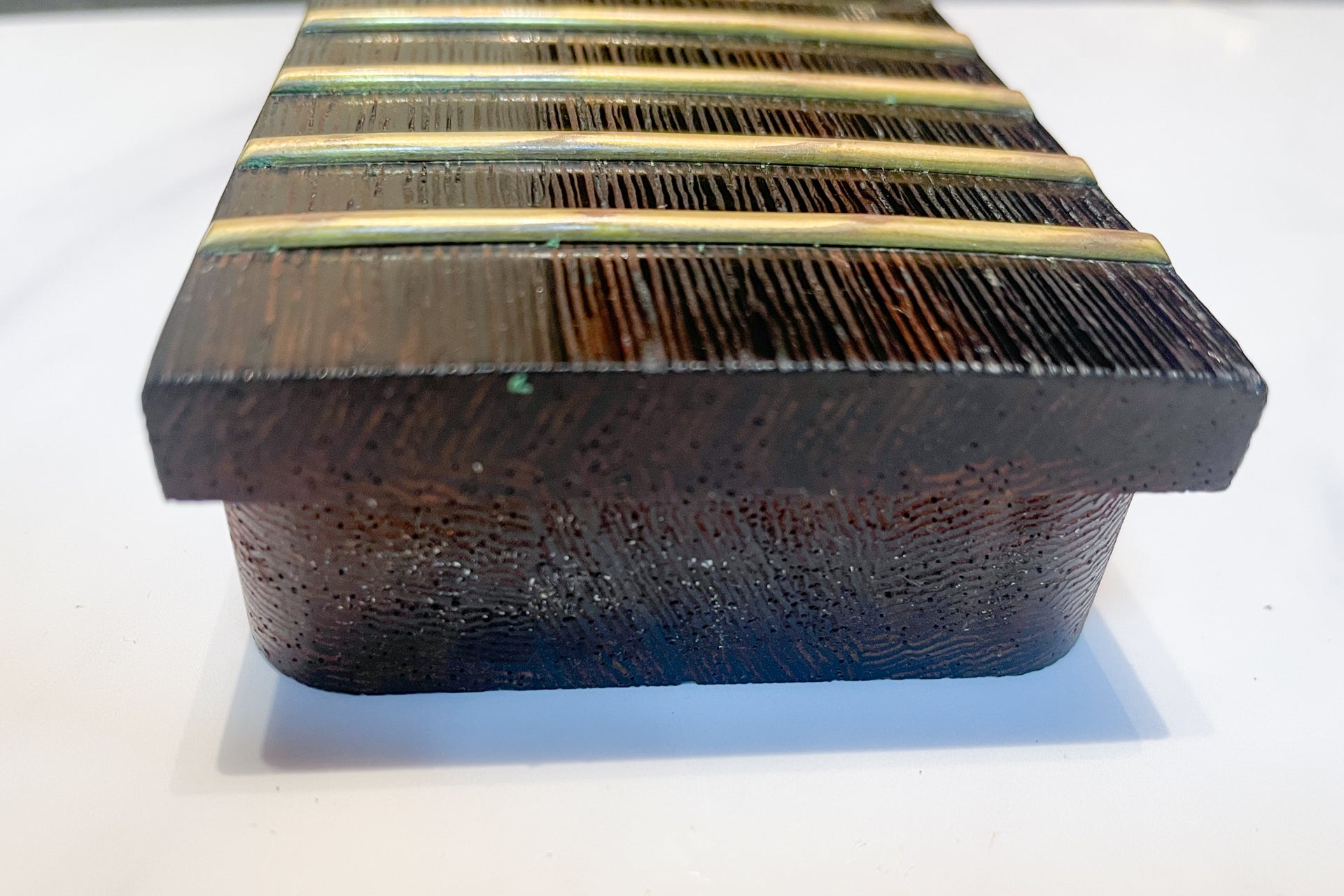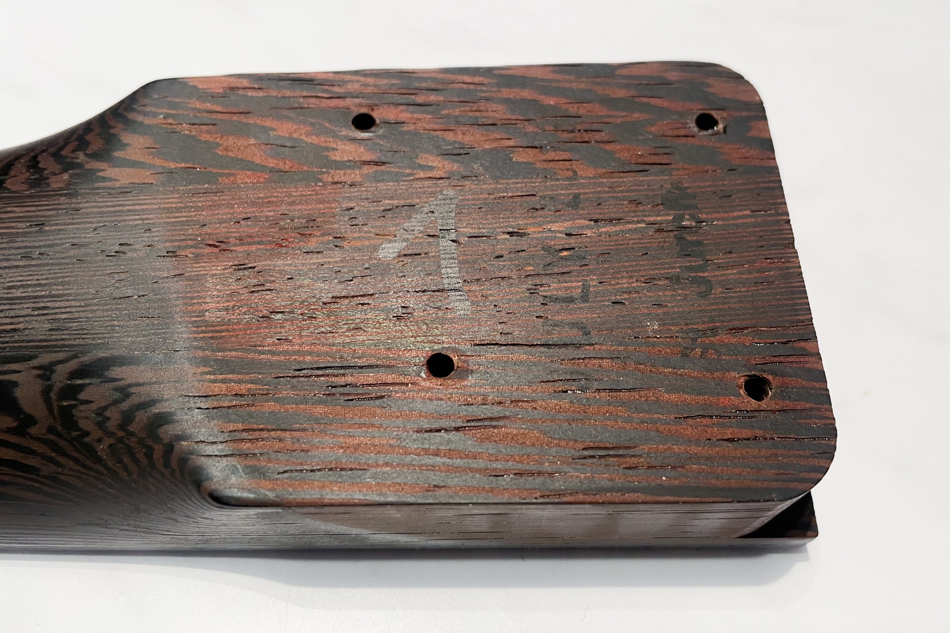 The neck is in good condition. There are scratches on the fingerboard.