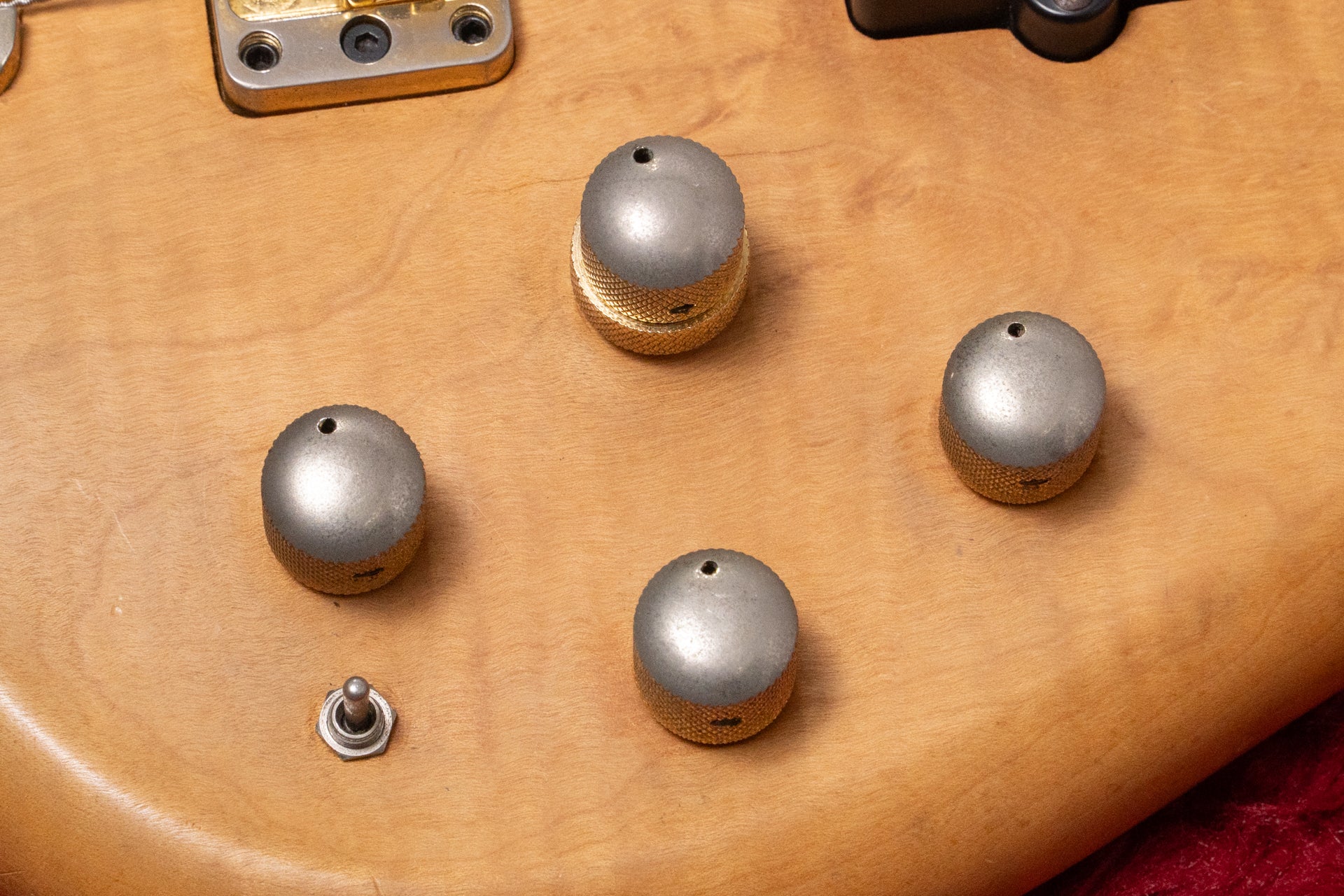 Controls: Master volume/balancer, treble, middle, bass, 3-way bridge pickup wiring switch (parallel/tap/series)