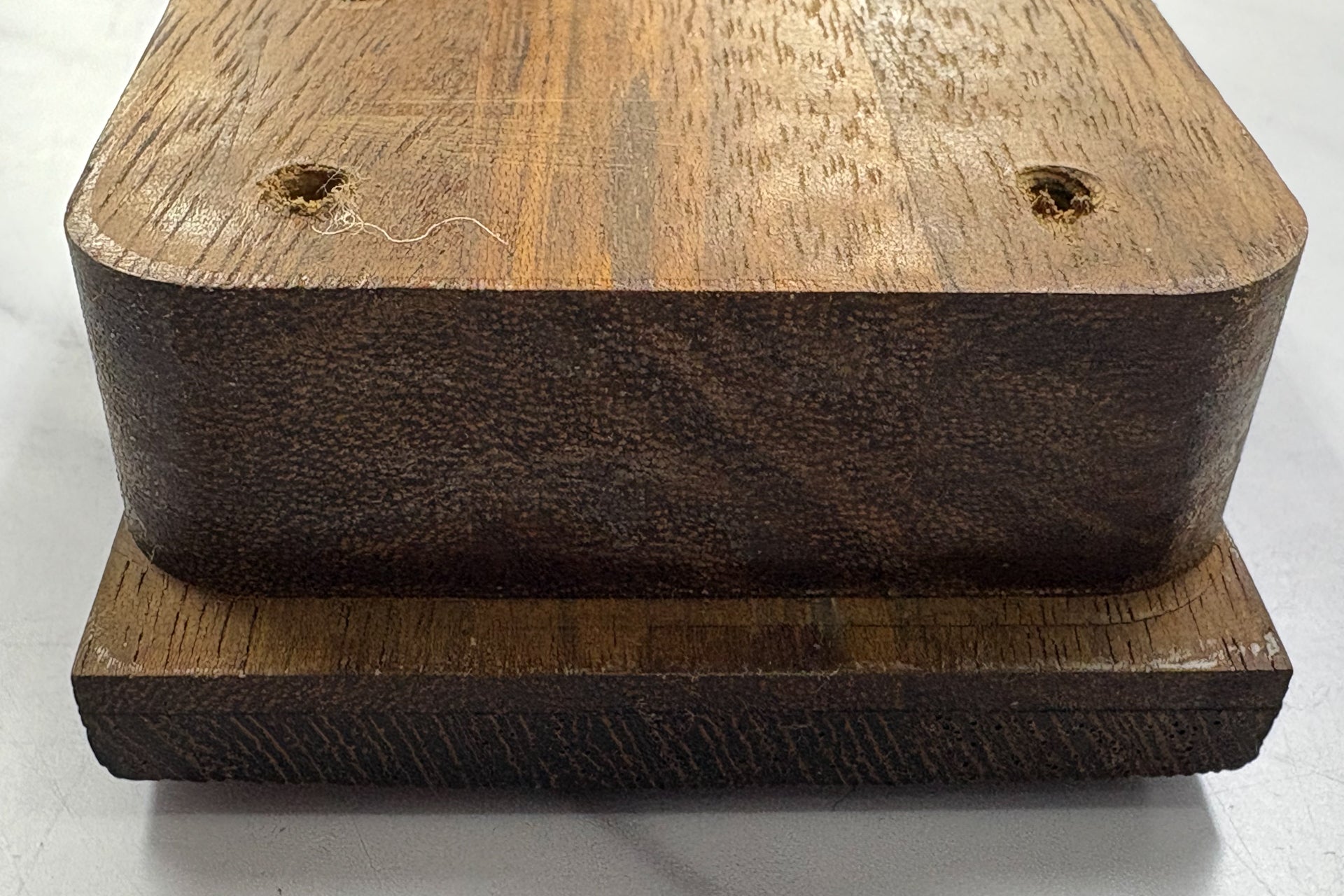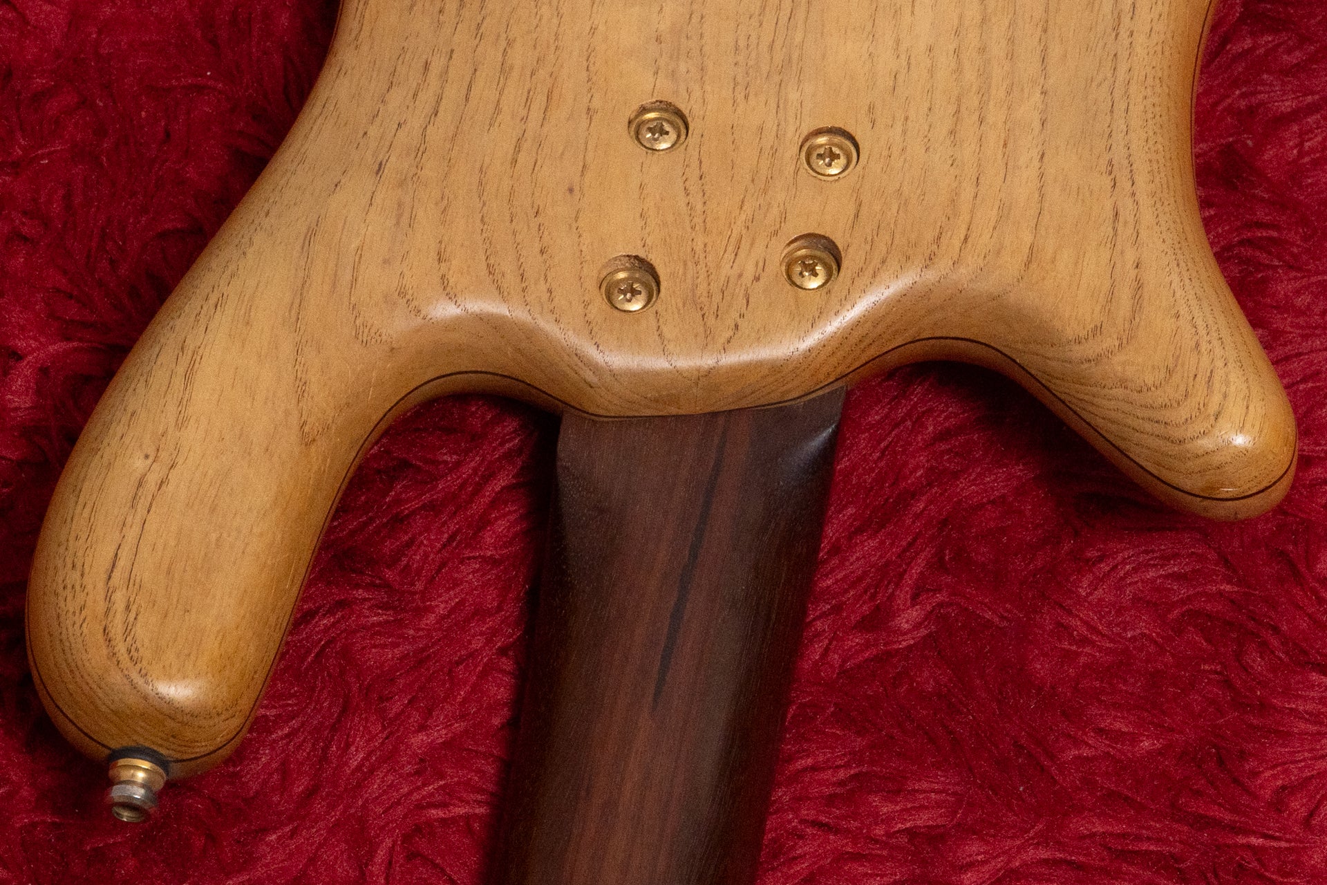 The neck is in good condition. There is a slight unevenness where the neck laminate is glued together. This may be noticeable to some, but it does not interfere with playability.