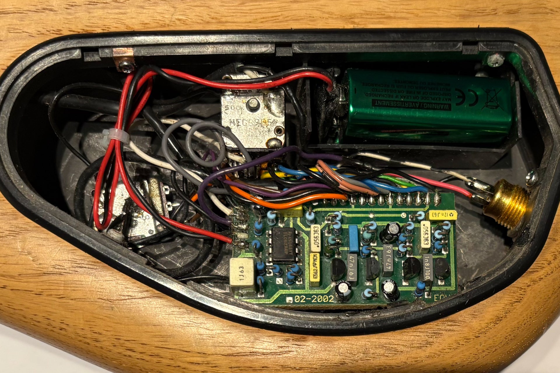 The bridge pickup has been replaced with a SEYMOUR DUNCAN SMB-4D. The volume knob's set screw has been replaced with a hexagonal type (the others are flathead).