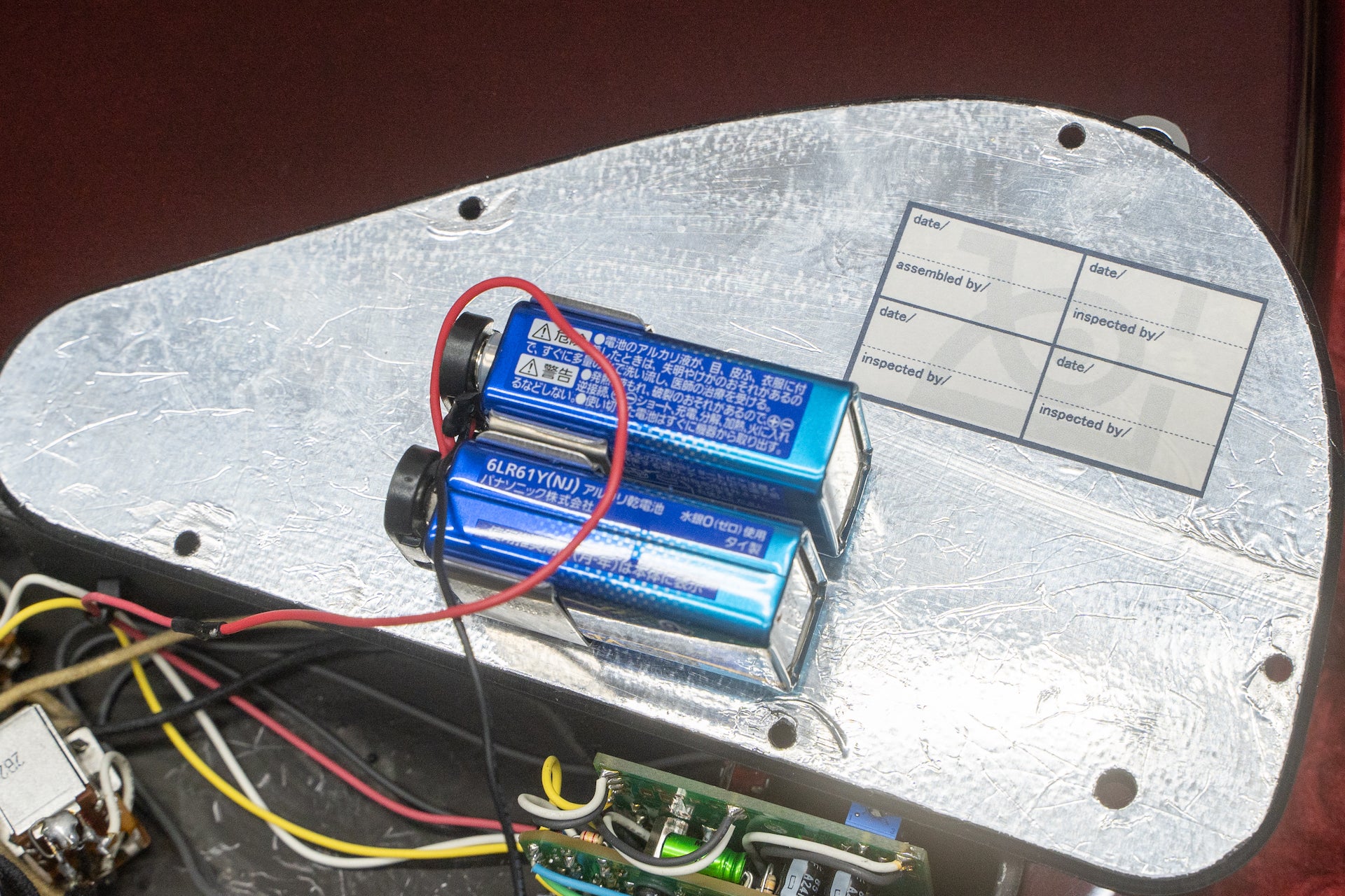 Controls : neck PU volume (push/pull - active/passive), bridge PU volume (push/pull - parallel/series), master tone, bass, middle, treble, middle freq. switch, treble freq. switch, preamp gain ( in cavity)