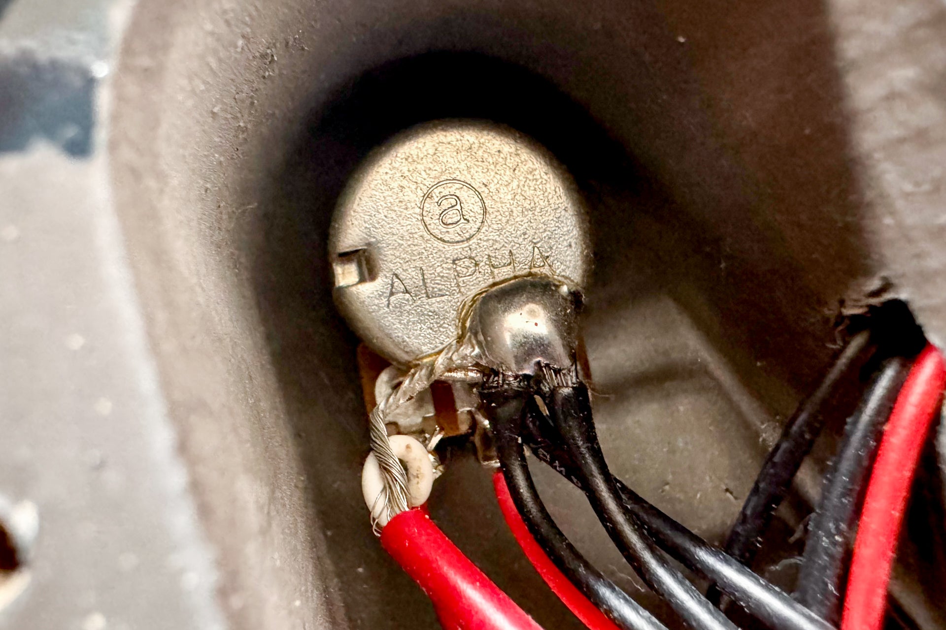 The body is alder, and the neck is a 5P laminate type that combines maple and mahogany.