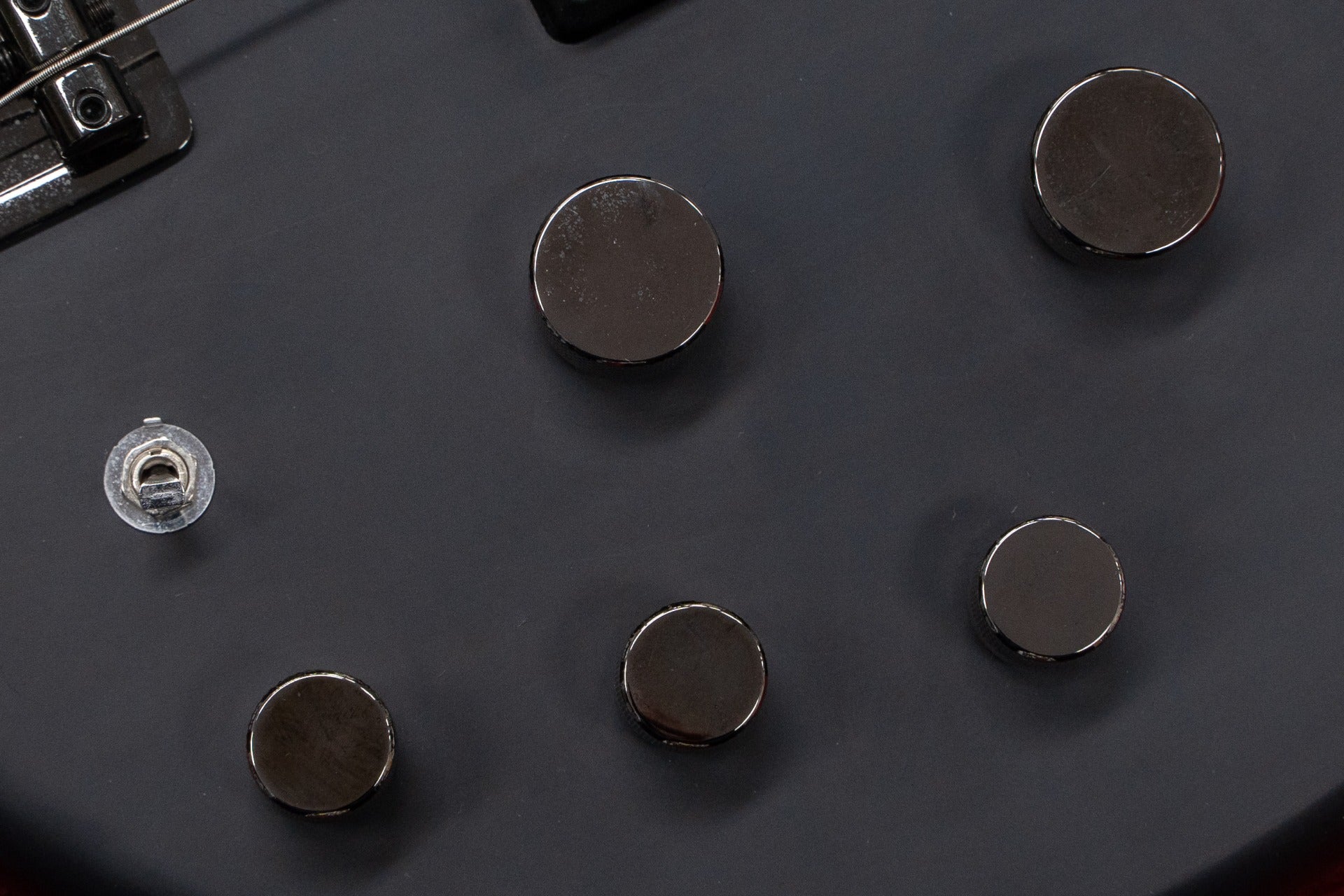 컨트롤: 마스터 볼륨, 밸런서, 저음, 중간, 고음, 활성/수동 스위치.