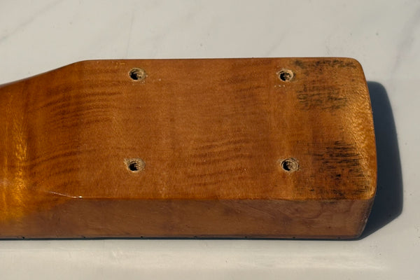 The neck shows signs of high-rise. Adjusting it 1.0mm higher than the GIB standard (3.0mm-3.5mm) will allow for smooth playability. Thanks to the short scale length, this guitar can be played comfortably even with high string height.