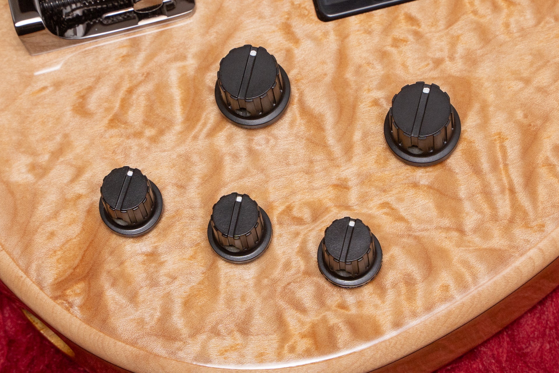 The body back is Alder and the top is Figured Maple.