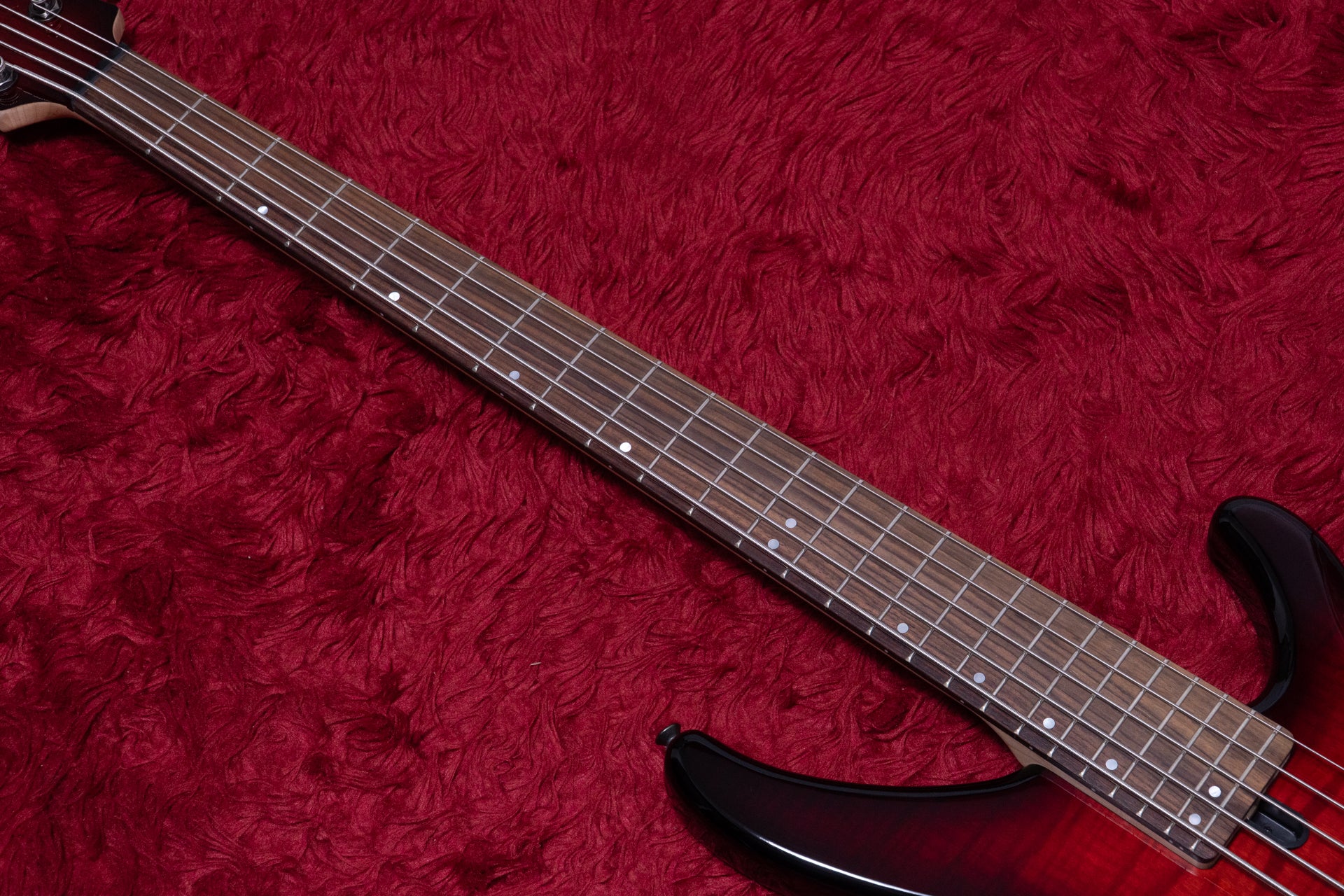 The fingerboard is probably Indonesian rosewood.
