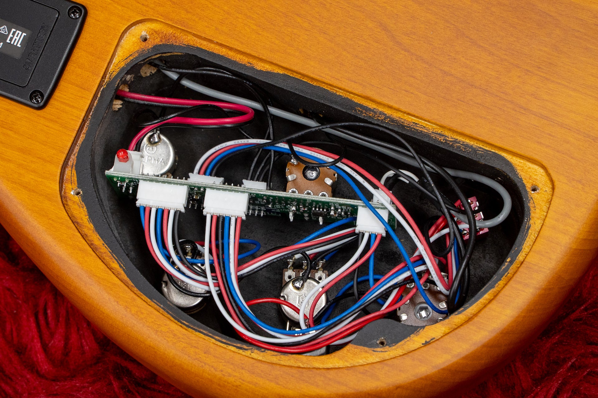 회로는 강력한 험버킹 PU와 스마트 프리앰프를 결합하여 자연스럽게 고품질입니다.
