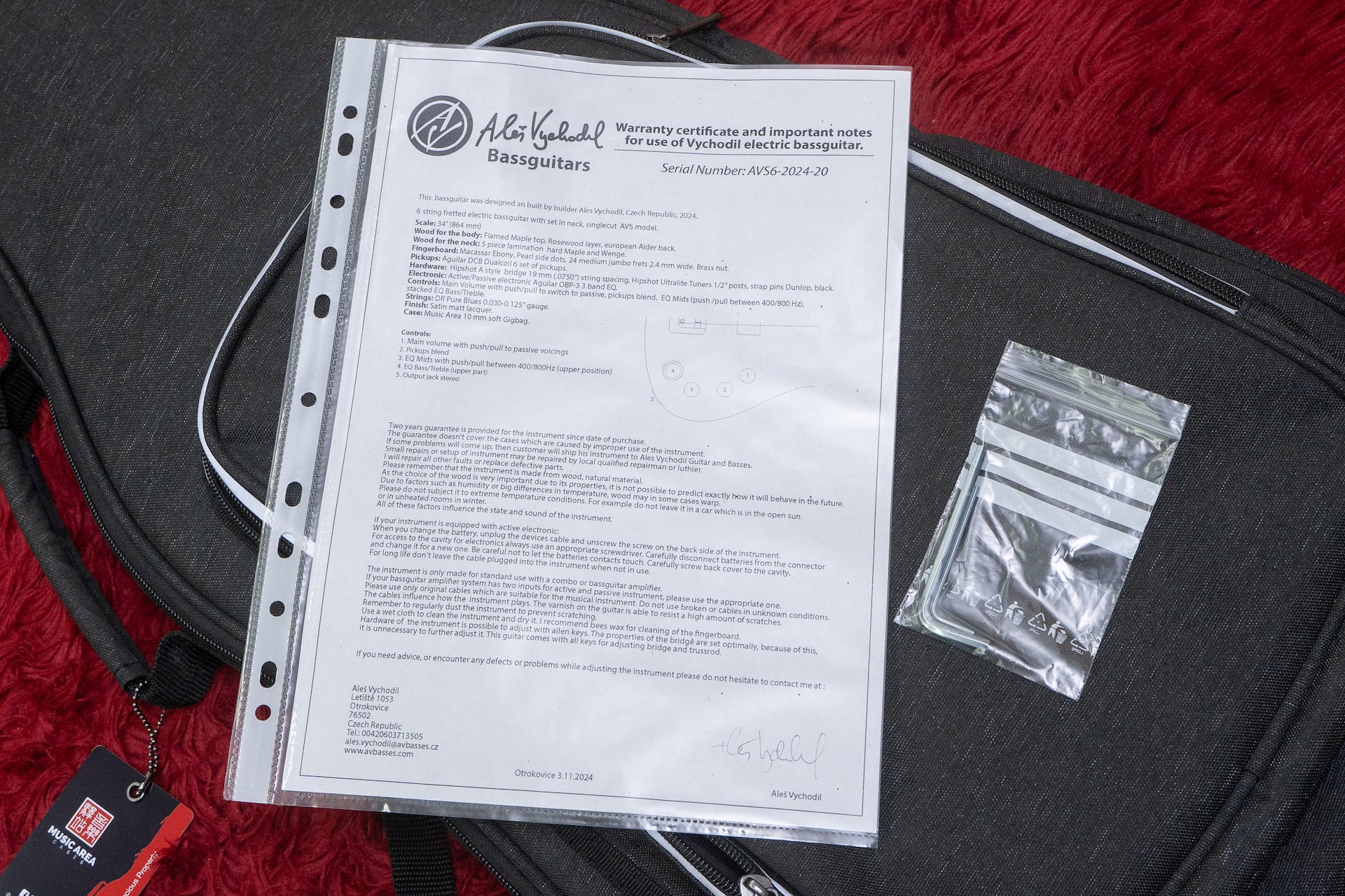 Accessories: gig bag, wrench, spec sheet