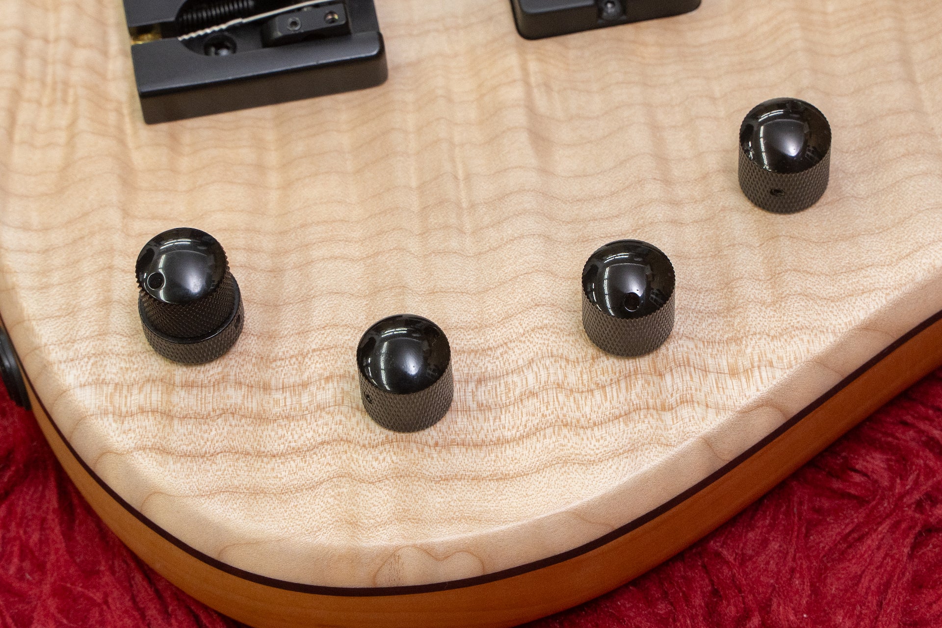 The body has Flamed Maple on top and Alder on the back with Rosewood in between.