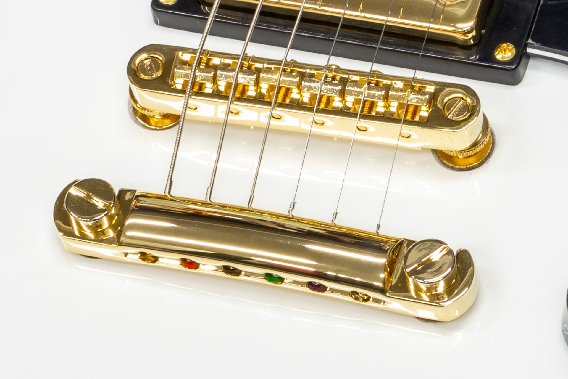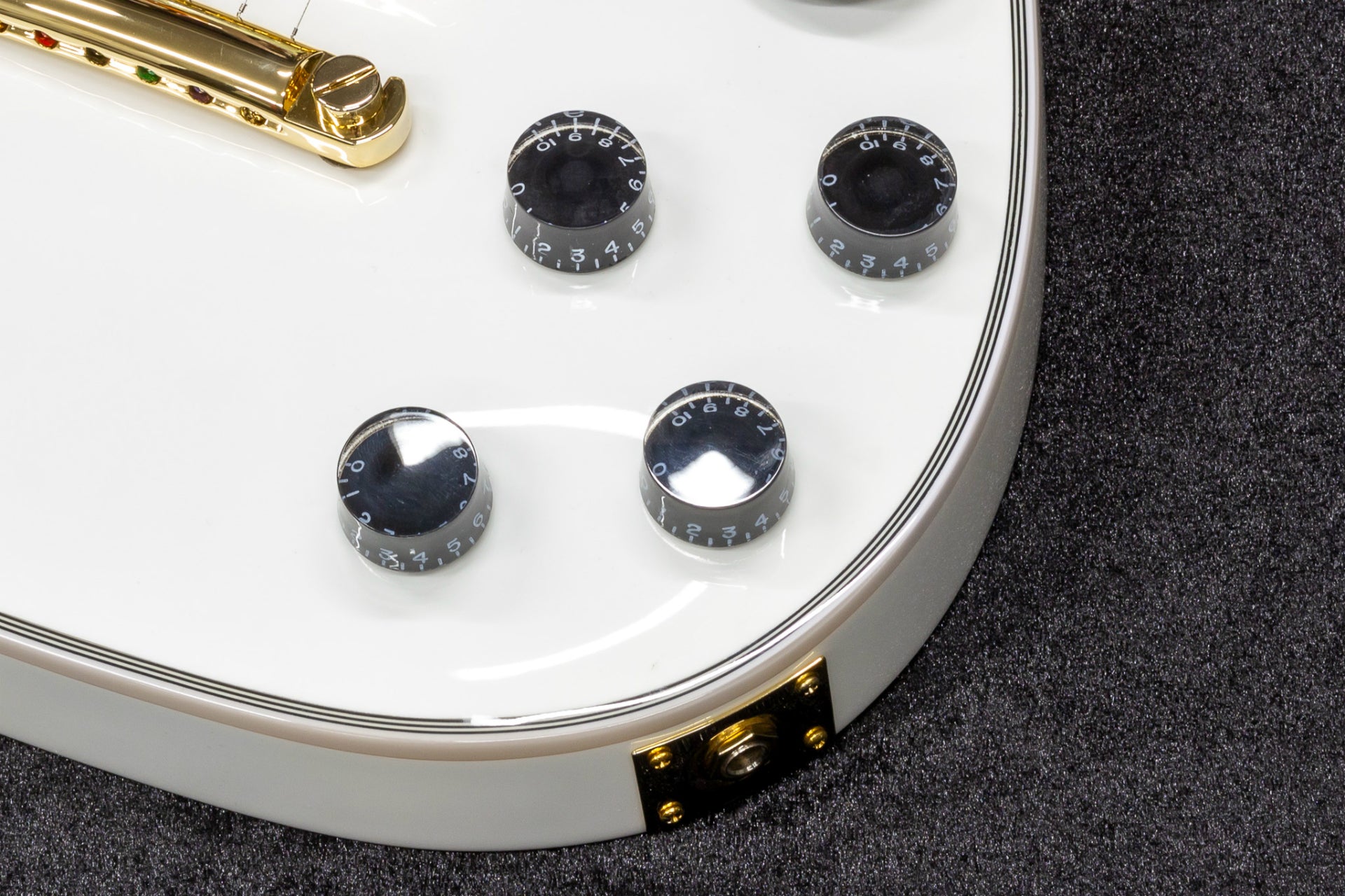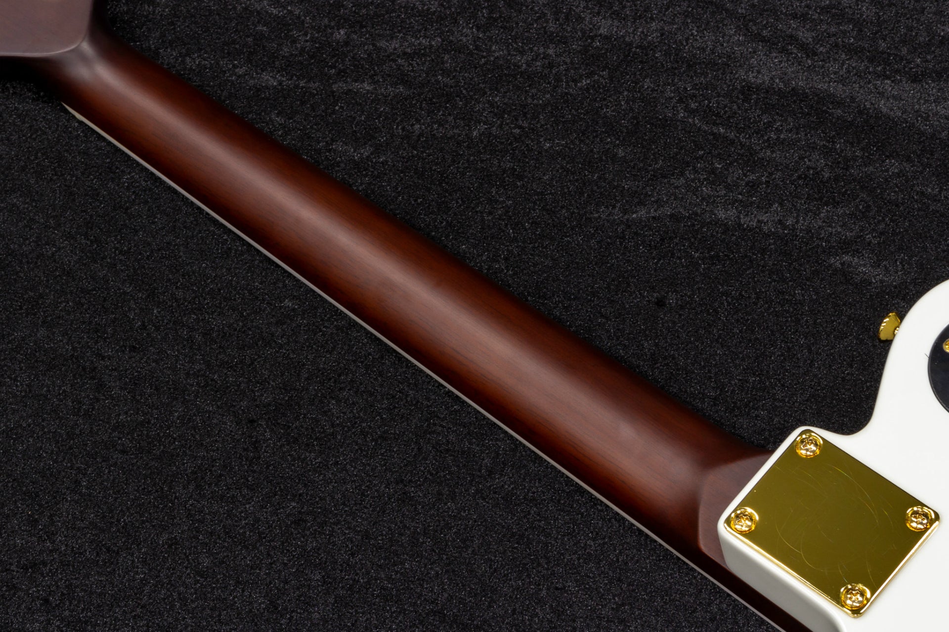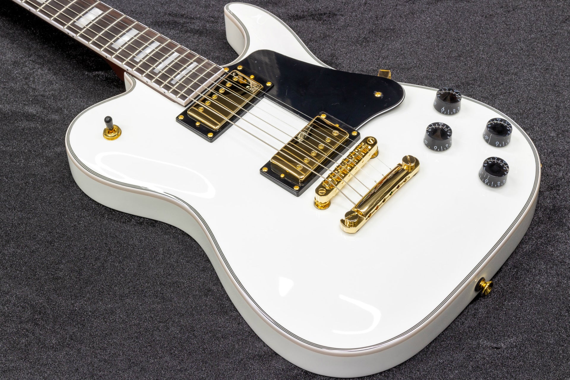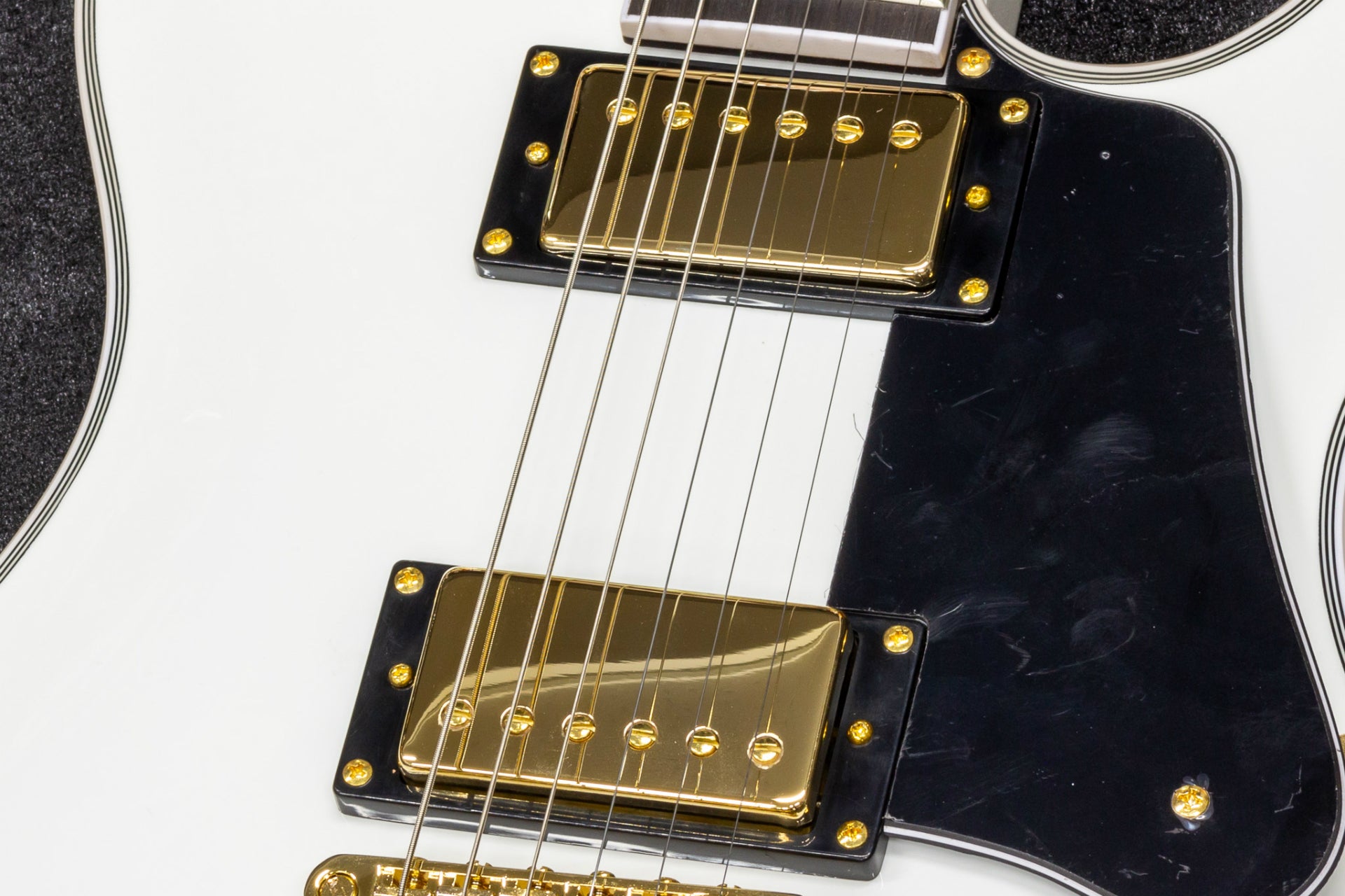 First of all, it is worth mentioning the matching color of the fill, which is reminiscent of Les Paul Custom, and the gold hardware.