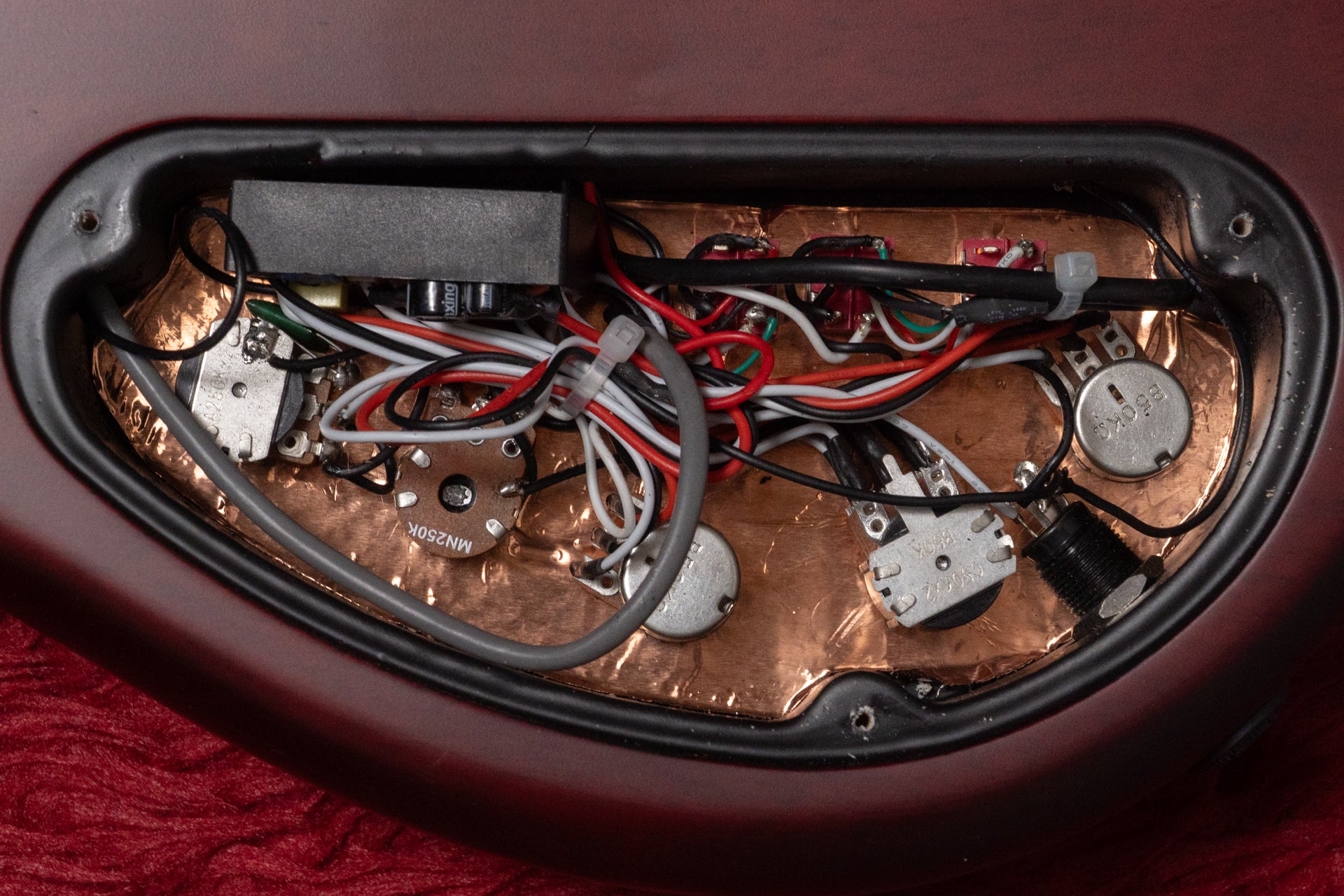 The controls are diverse yet simple: Volume/Tone (Dual Pot), Pickup Blender, Treble, Middle/Mid Frequency (Dual Pot), Bass, Mini Toggle (Active & Passive), and two Mini Toggles (Pickup Series/Split/Parallel).