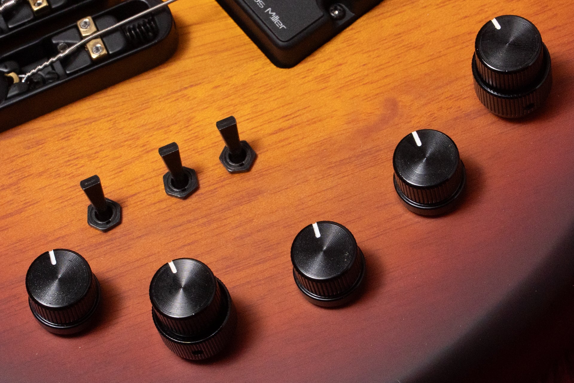 The controls are diverse yet simple: Volume/Tone (Dual Pot), Pickup Blender, Treble, Middle/Mid Frequency (Dual Pot), Bass, Mini Toggle (Active & Passive), and two Mini Toggles (Pickup Series/Split/Parallel).