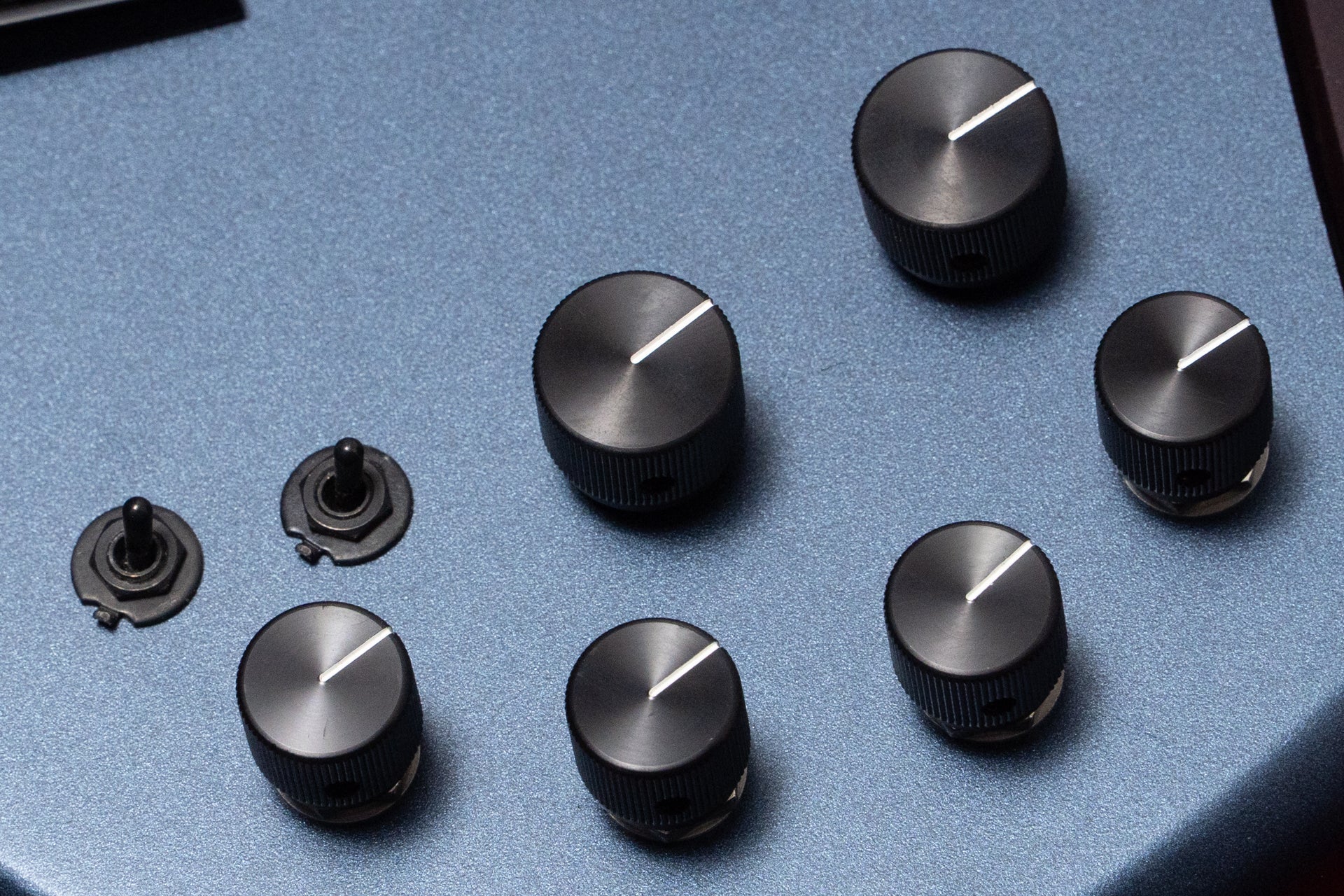Controls: 1 volume, 1 tone, Blender, 3 EQ, mid frequency SW, Preamp Off switch