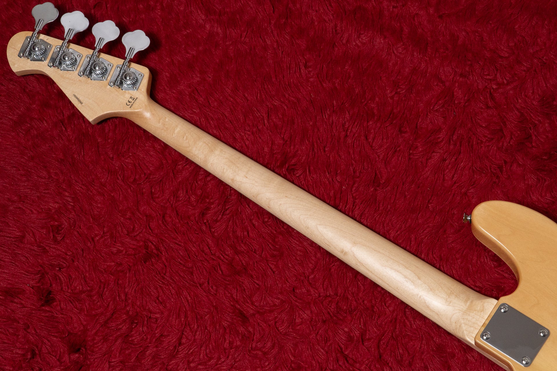 The neck is made of maple and the fingerboard is made of rosewood.