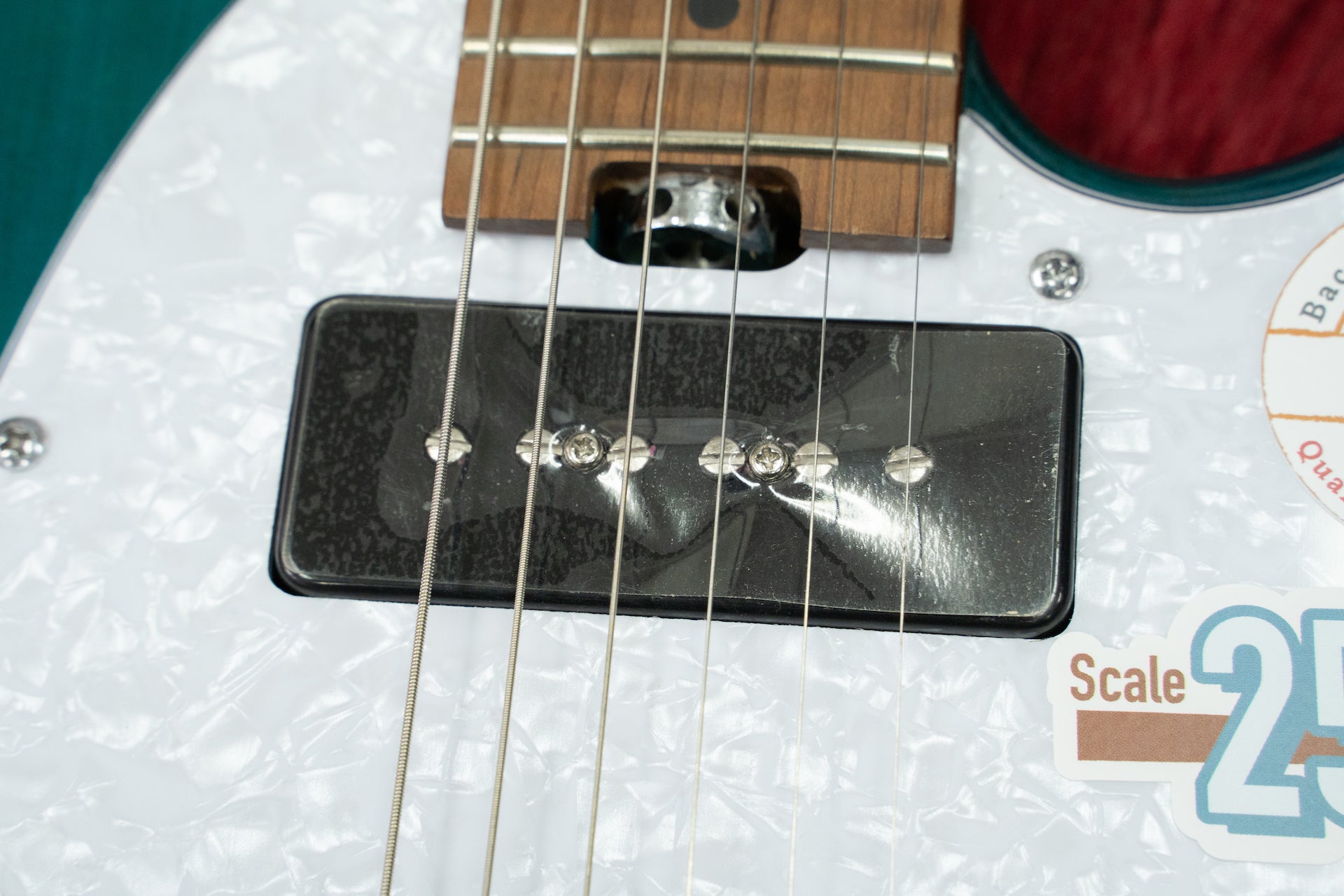 A P-90 is used on the front for a thick middle sound.
