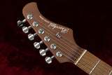 The body is made of nato, which is gaining attention recently for its similarities with mahogany in terms of appearance, specific gravity, and other characteristics, while the neck and fingerboard are made of roasted nato.