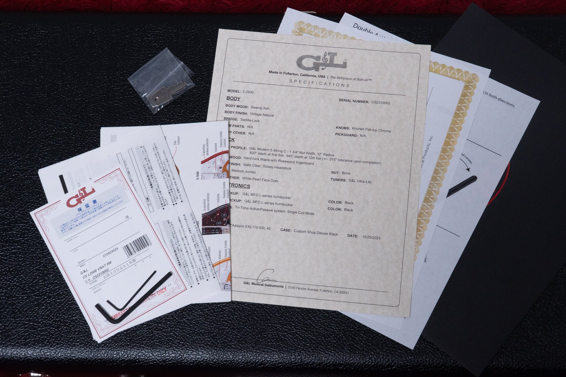 Accessories: Original hard case, warranty card, spec sheet, wrenches