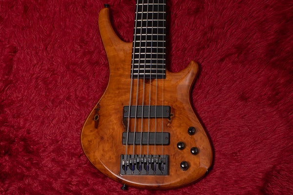 The body top is made of beautiful Burl Maple and the back is made of Mahogany.
