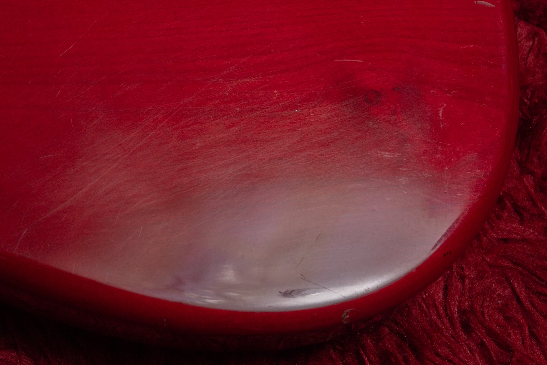 The bridge and neck pickups have been re-drilled, and the center pickup has been re-drilled to further widen the PB-type recess.