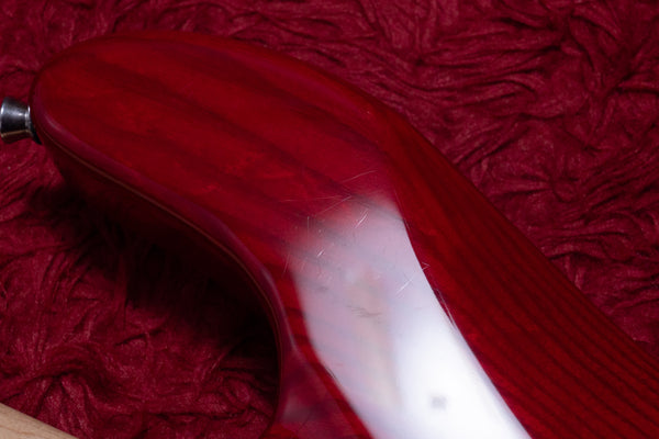 The body is made of ash and the fingerboard is maple, a classic configuration.
