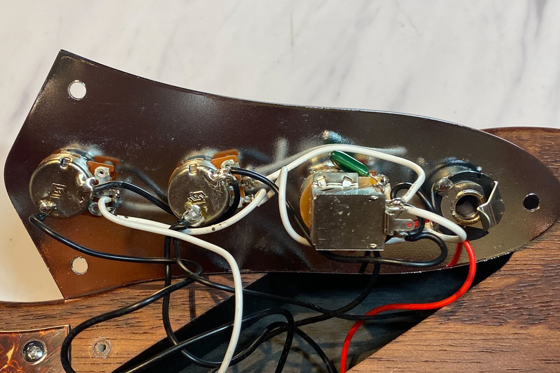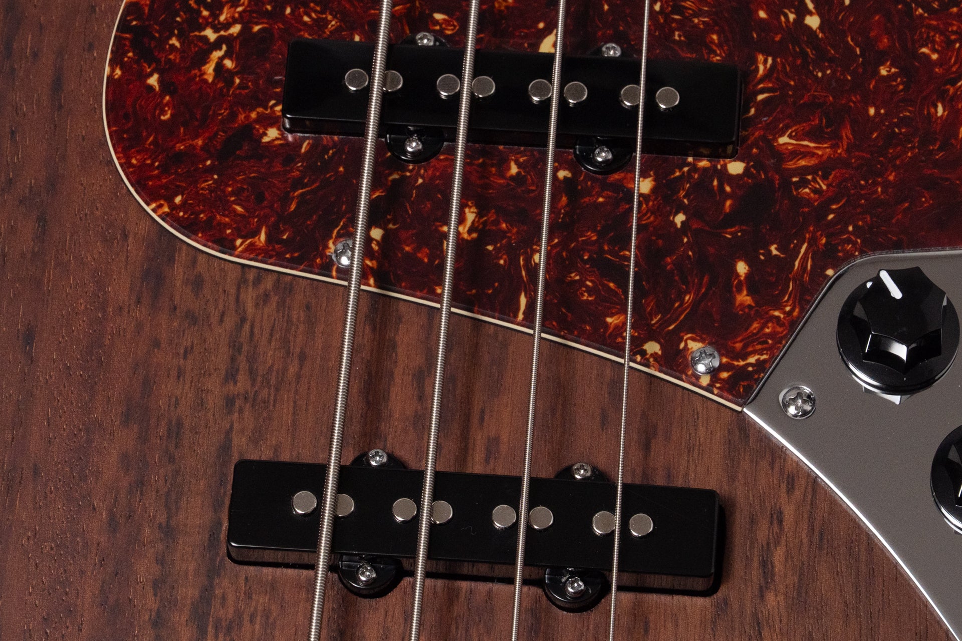 Controls: Neck PU volume, bridge PU volume, master tone (pull-turbo switch)