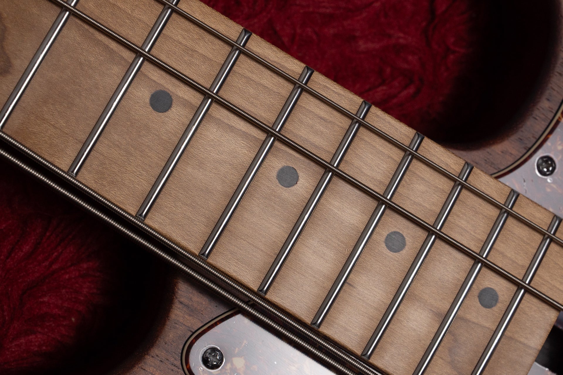 The body is made of Nyatoh, and the neck and fingerboard are made of Roasted Maple.