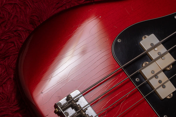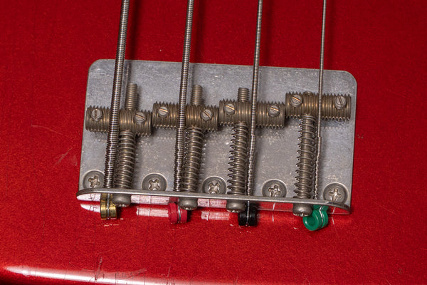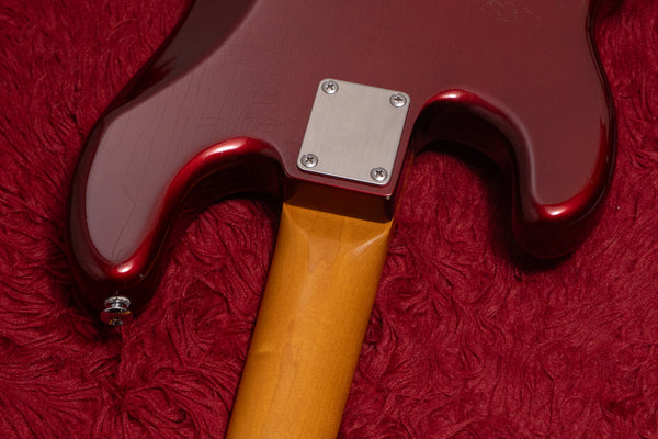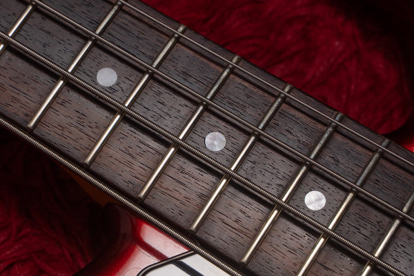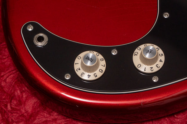 The vibrant candy apple red body is beautifully accented with white pickup covers and hat knobs.
