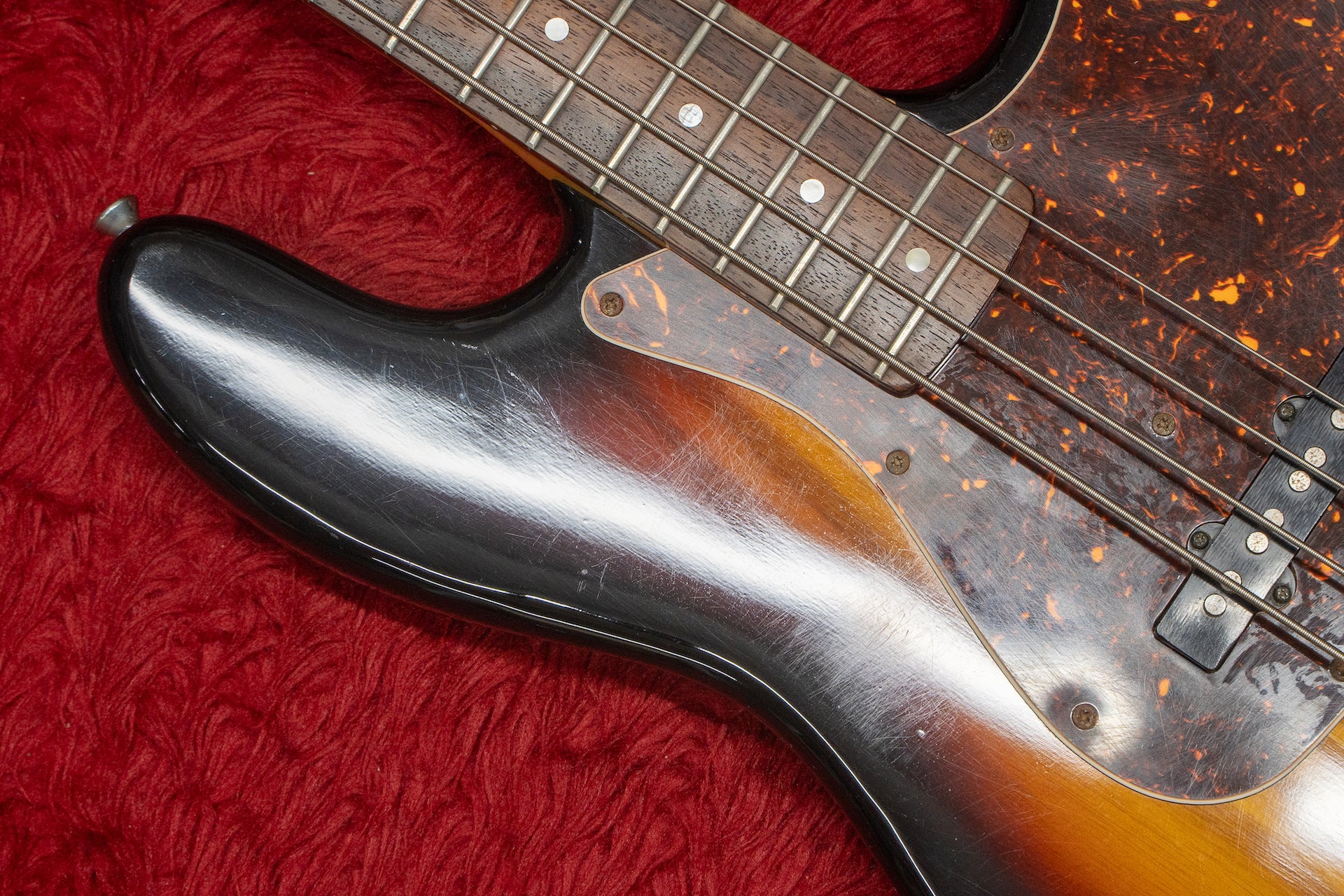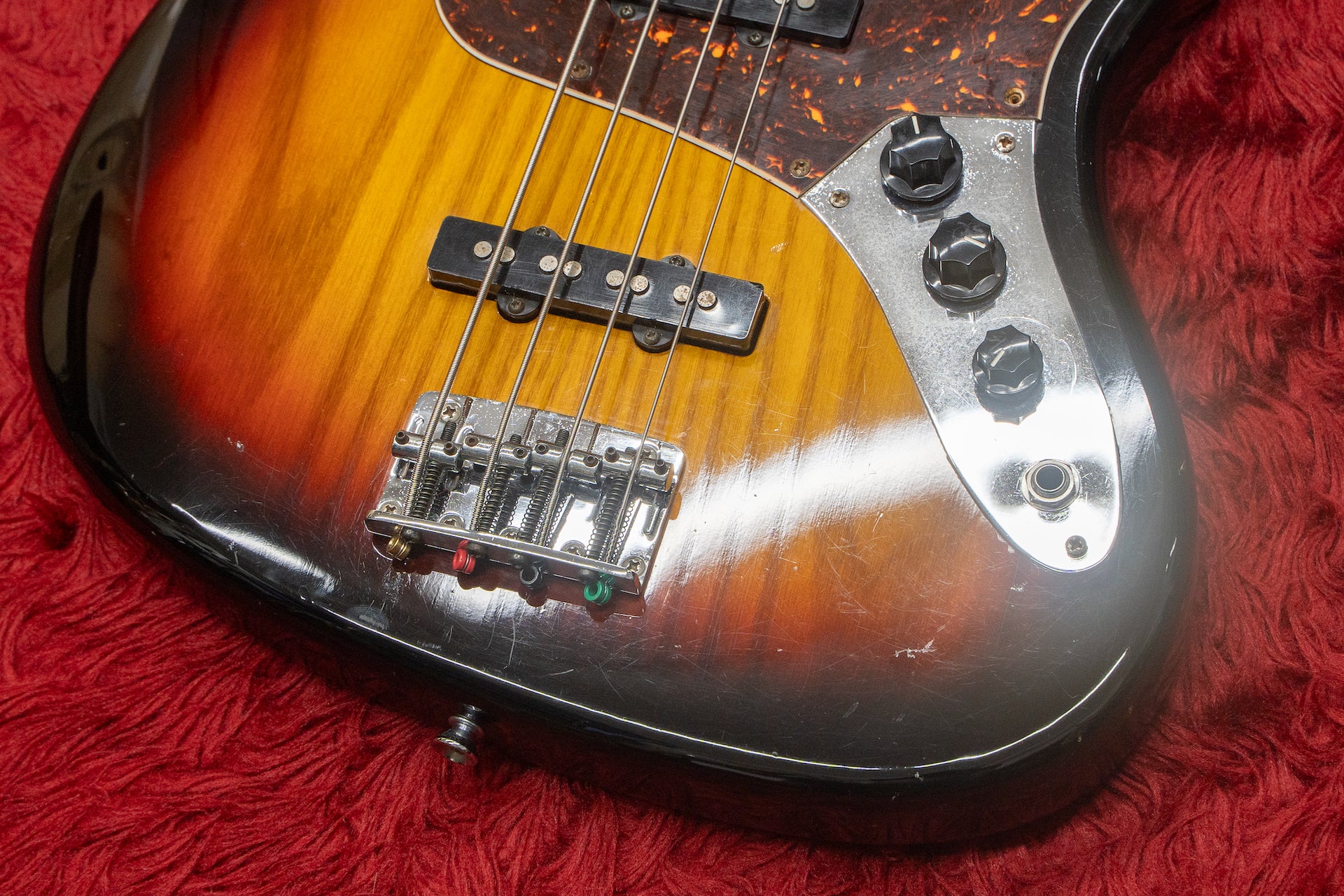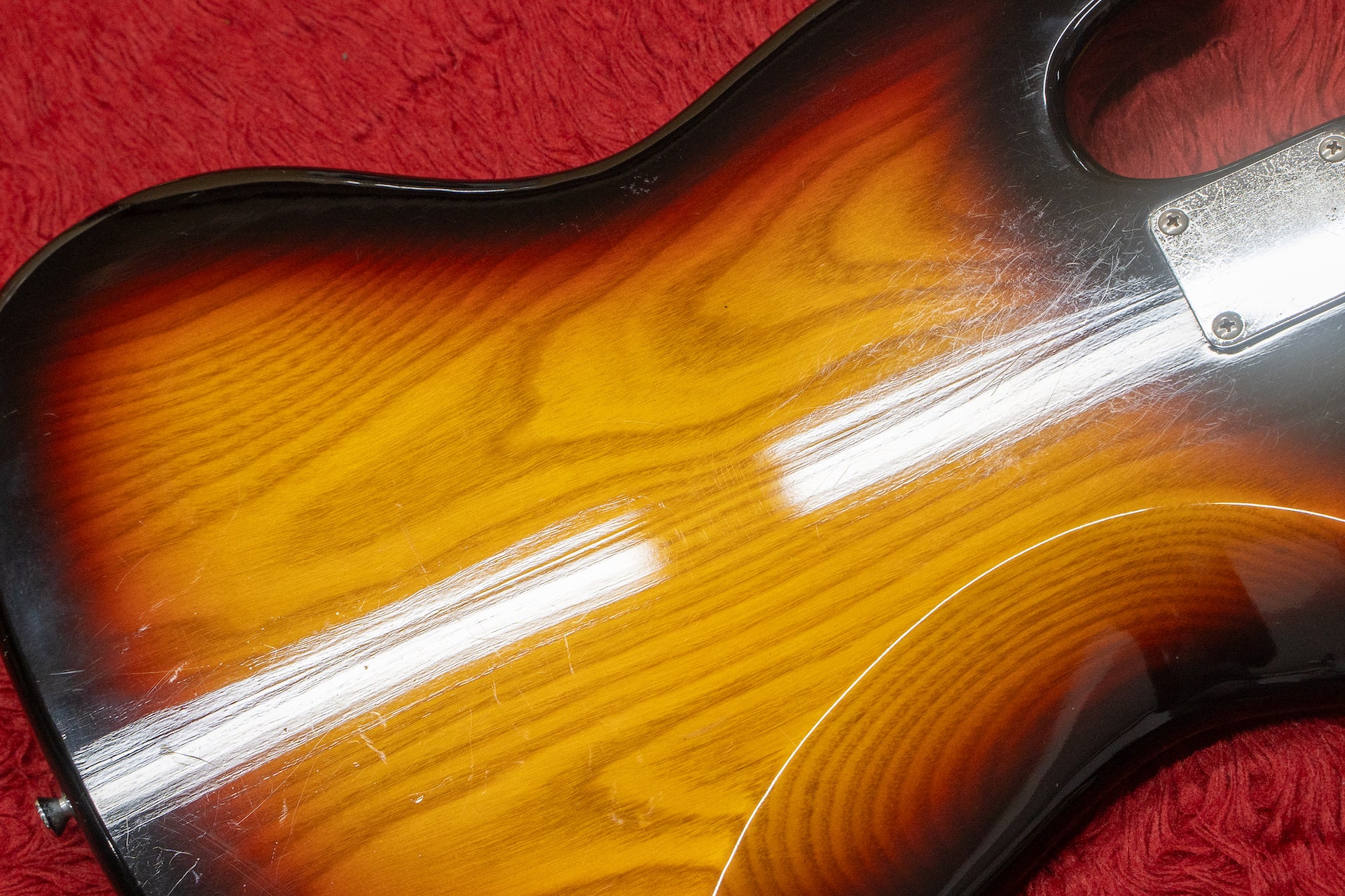 The condition of the body and painted surface has many scratches and dents overall, giving the impression that it has been well used.