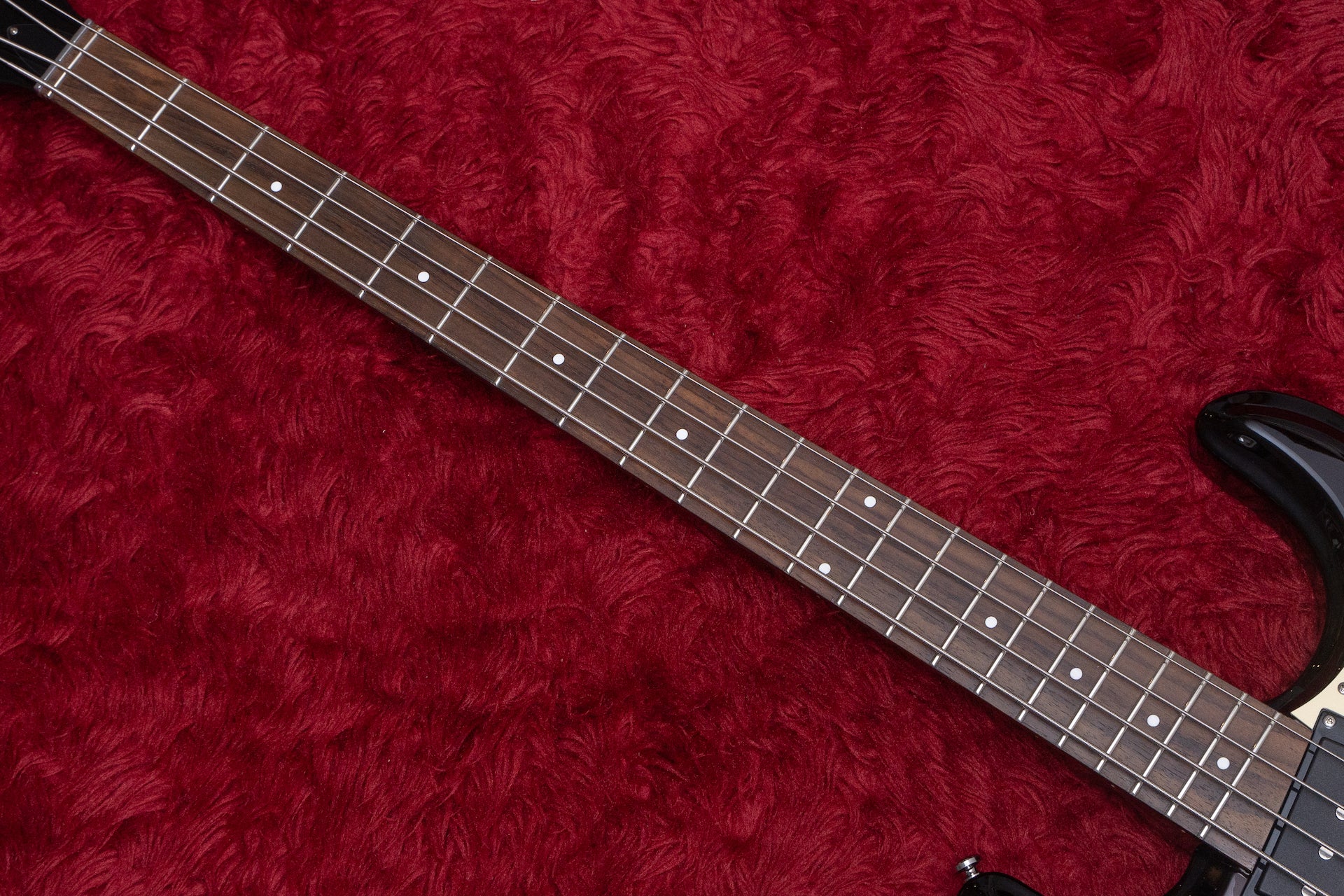 The condition of the neck is slightly raised. Since the bridge does not go all the way down, the string height above the 12th fret is adjusted to 2.7mm on the 1st string side and 3.2mm on the 5th string side. It can be played without any clogging or buzzing.