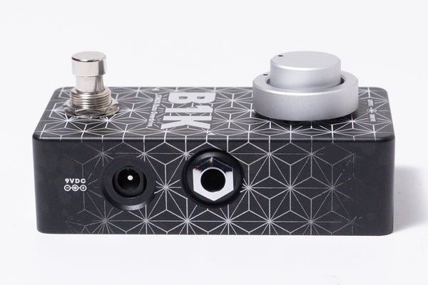 The top of the body features LEVEL and DRIVE controls, while the back panel features Blend and Tone, as well as switches for Grunt (bass boost) and M Boost (mid boost).