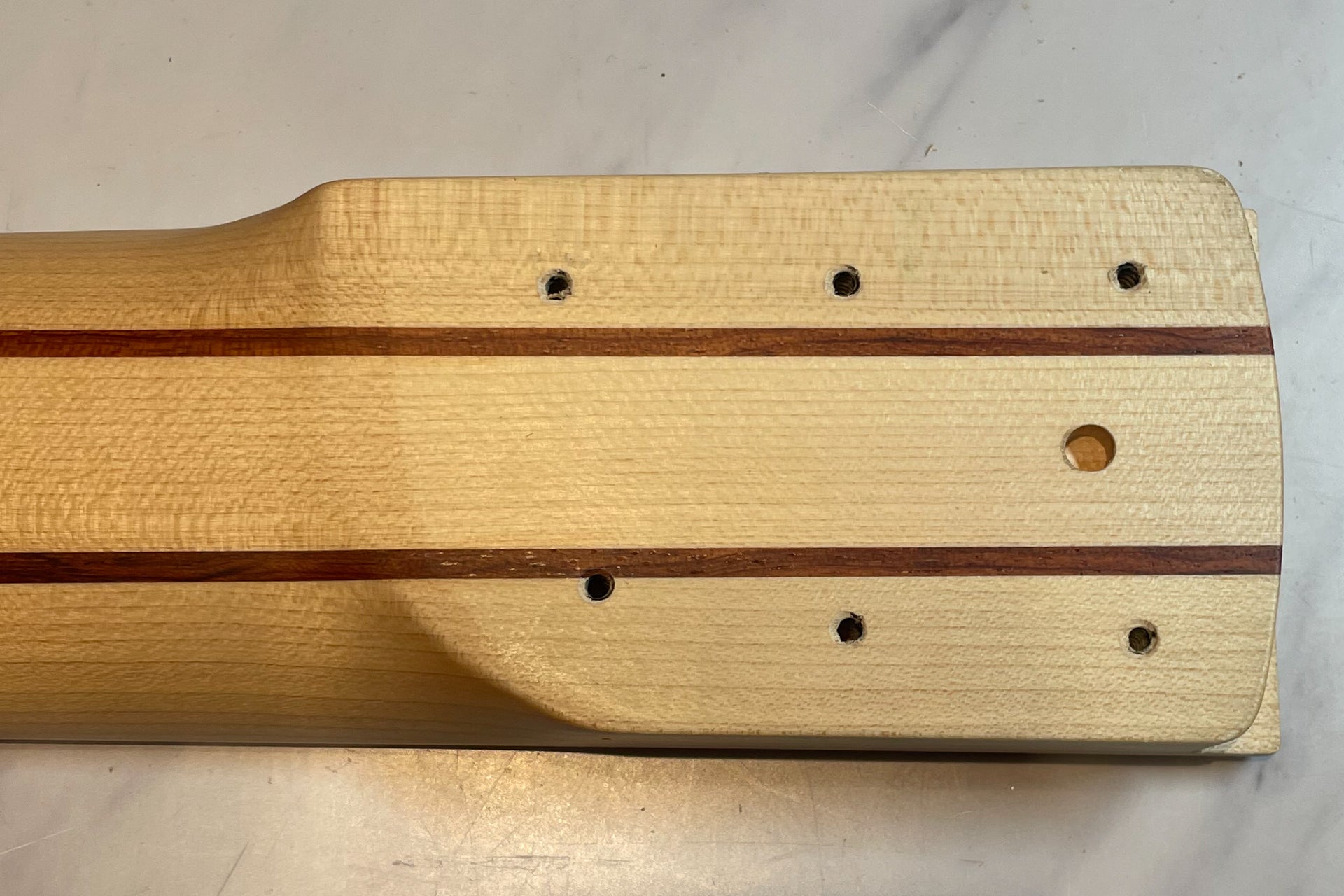 The neck is a 5-ply laminate of hard maple and bubinga.