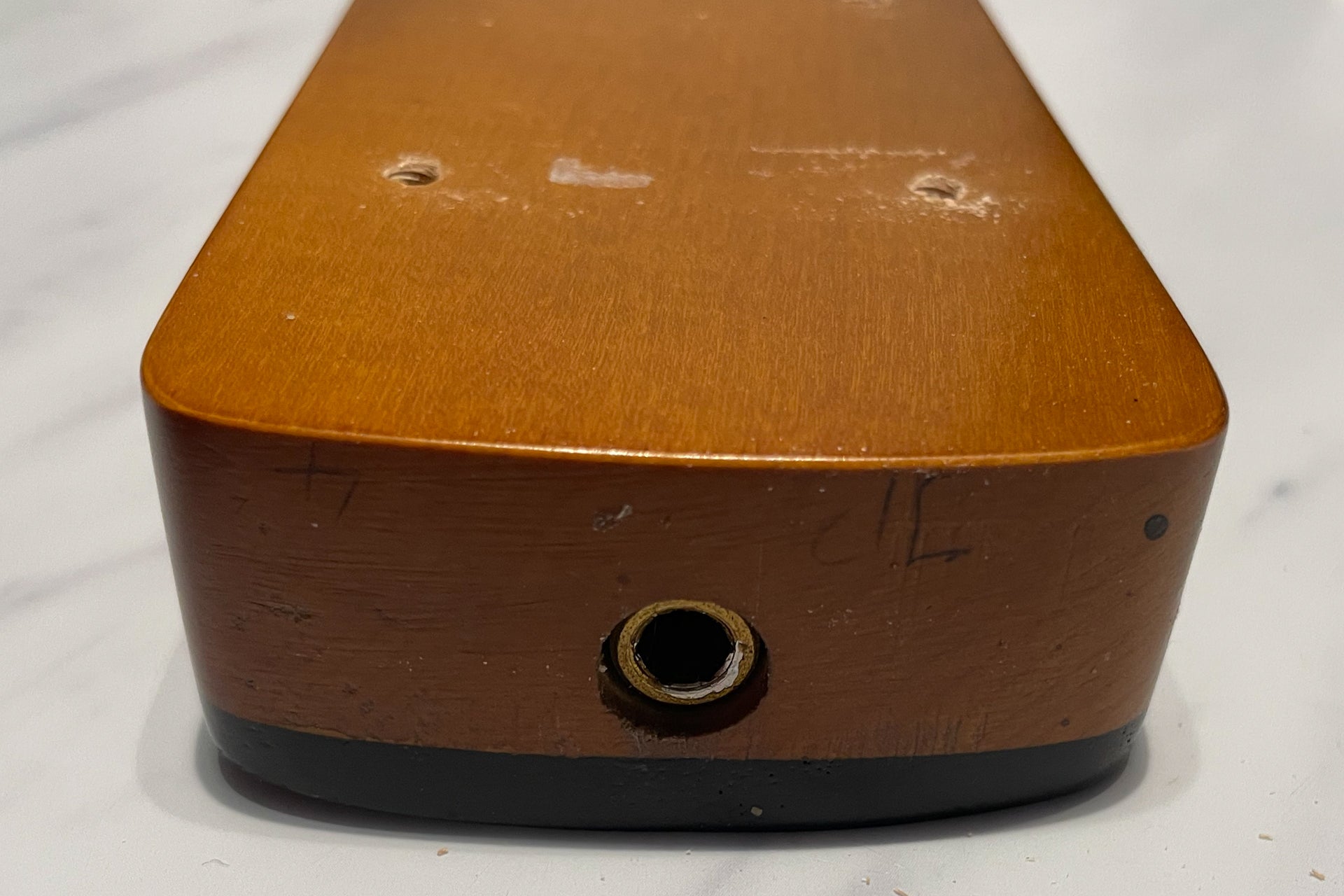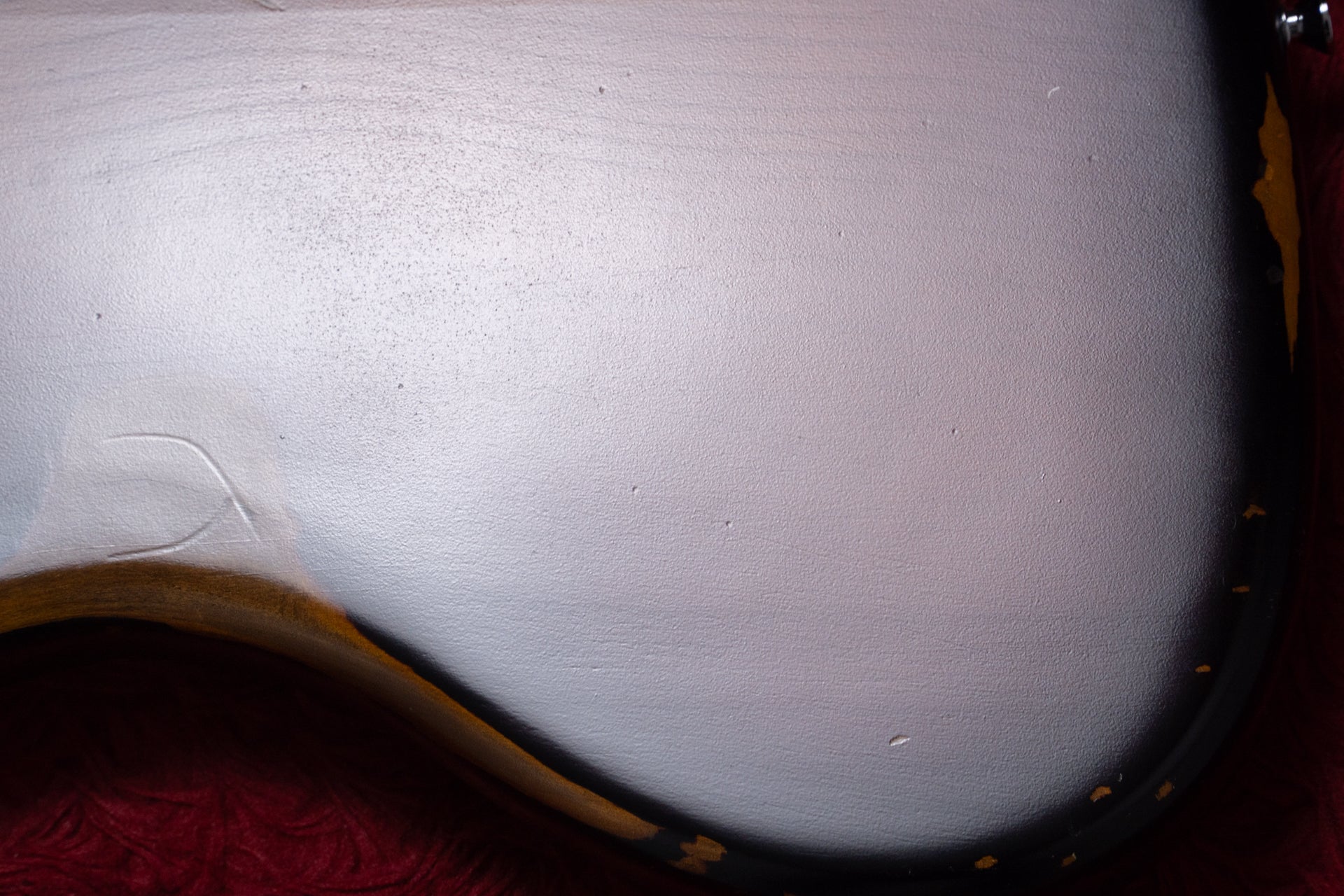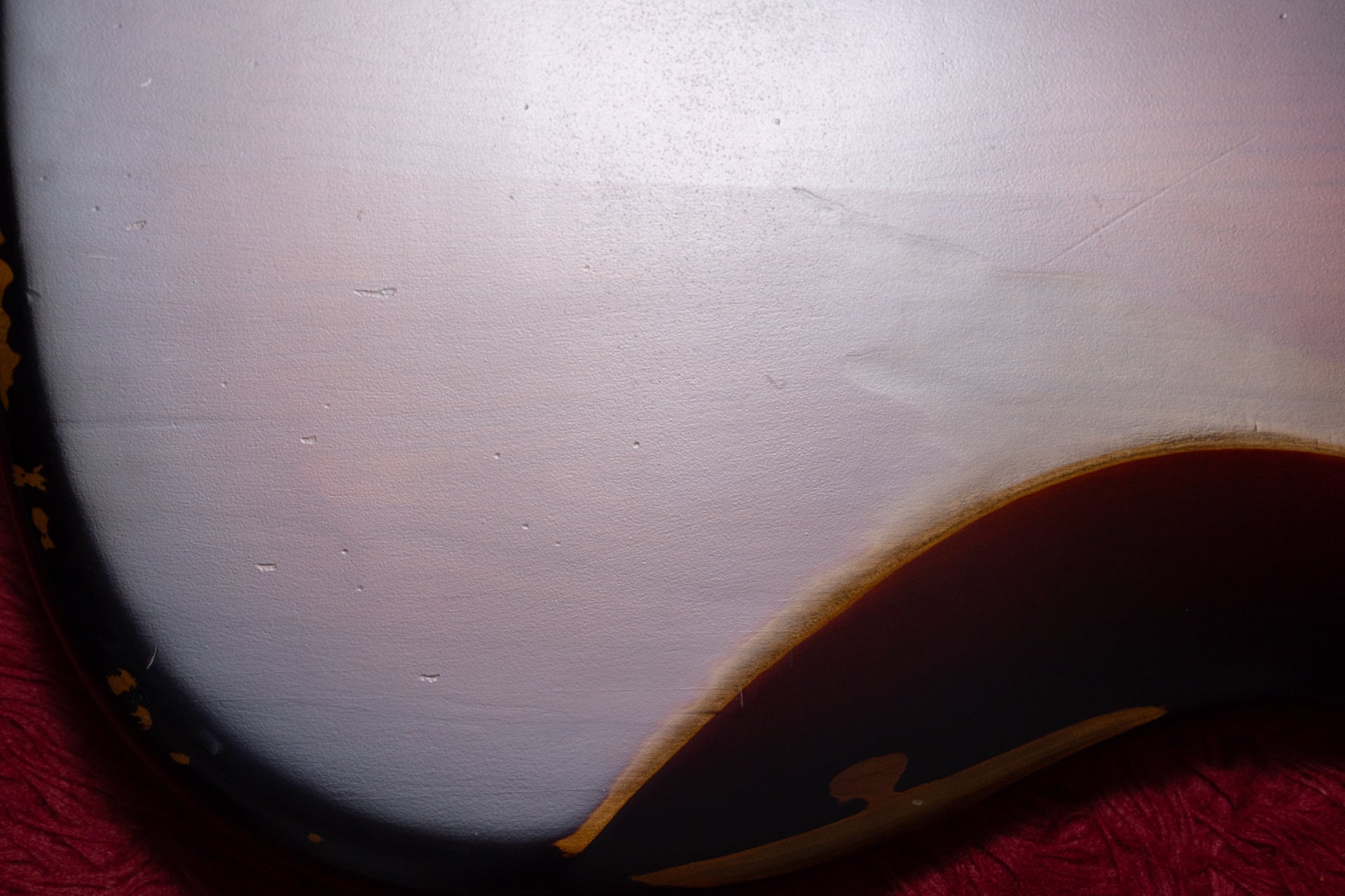 The body and finish show dents, scratches, and paint peeling, but due to the aging process, it is difficult to determine whether these marks are from later. There are also screw hole marks that suggest a pickguard and bridge cover were attached.